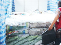 products are packed with ice in sections and entirely covered with tarpaulins in order to retain coolness and prevent