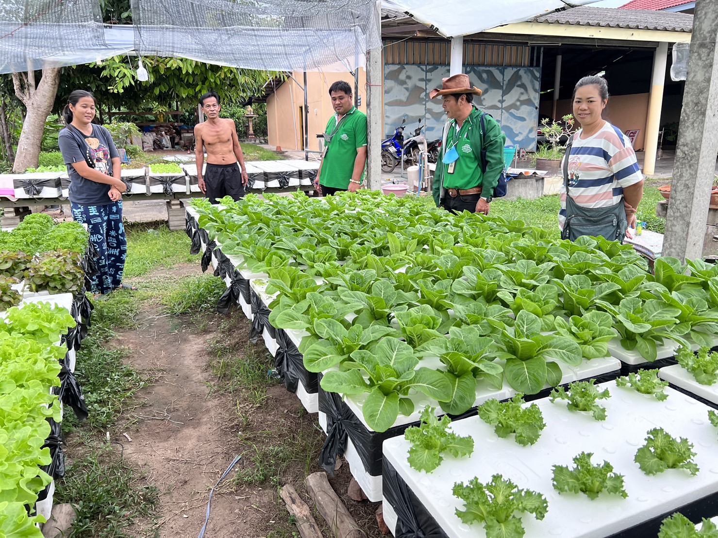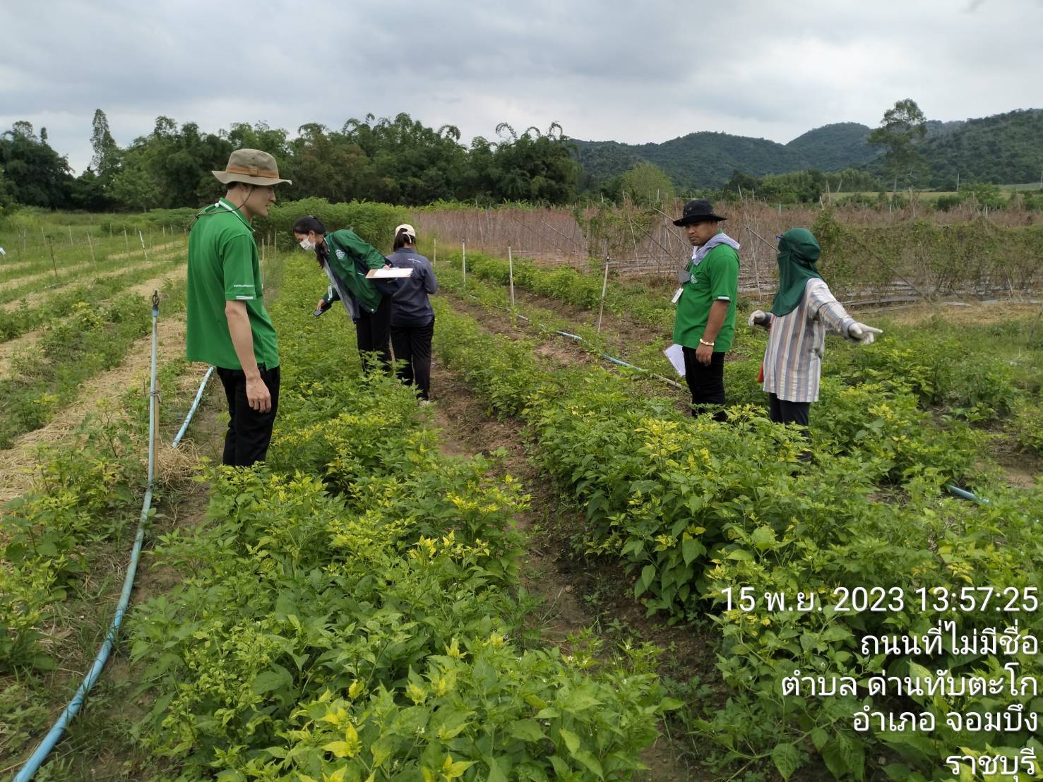 ฝ่ายพัฒนาการผลิต ร่วมกับนักวิชาการเกษตร ศวพ.ราชบุรีและศวพ.กาญจนบุรี ตรวจแปลงสมาชิกในโครงการผักปลอดภัย