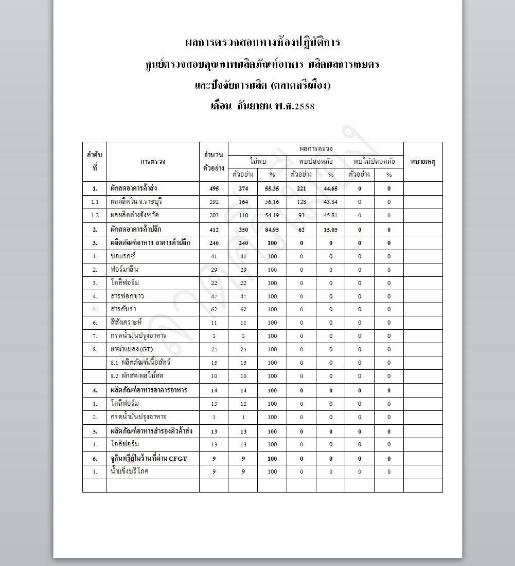รายงานผลการตรวจสอบทางห้องปฏิบัติการ ศูนย์ตรวจสอบคุณภาพผลิตภัณฑ์อาหาร ผลิตผลการเกษตร และปัจจัยการผลิต เดือน กันยายน 2558    19 ต.ค. 2558