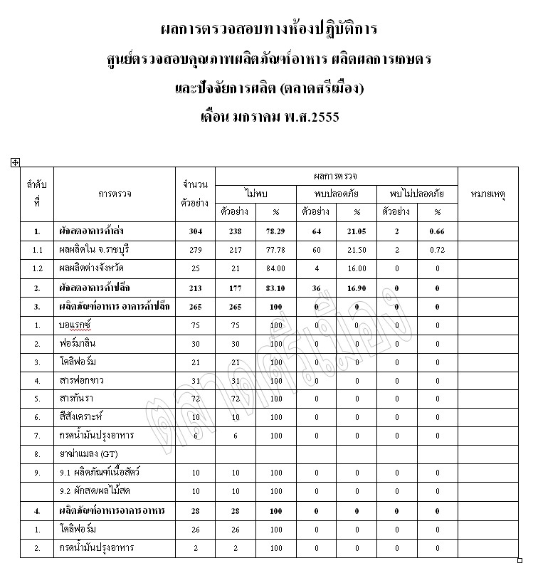 ผลการตรวจสอบทางห้องปฏิบัติการ เดือน มกราคม พ.ศ 2555    13 มี.ค. 2555
