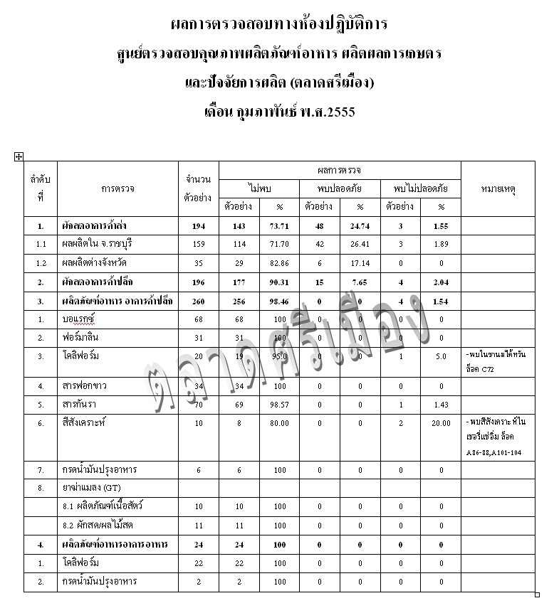 ผลการตรวจสอบทางห้องปฏิบัติการ เดือน กุมภาพันธ์ พ.ศ 2555    12 เม.ย. 2555