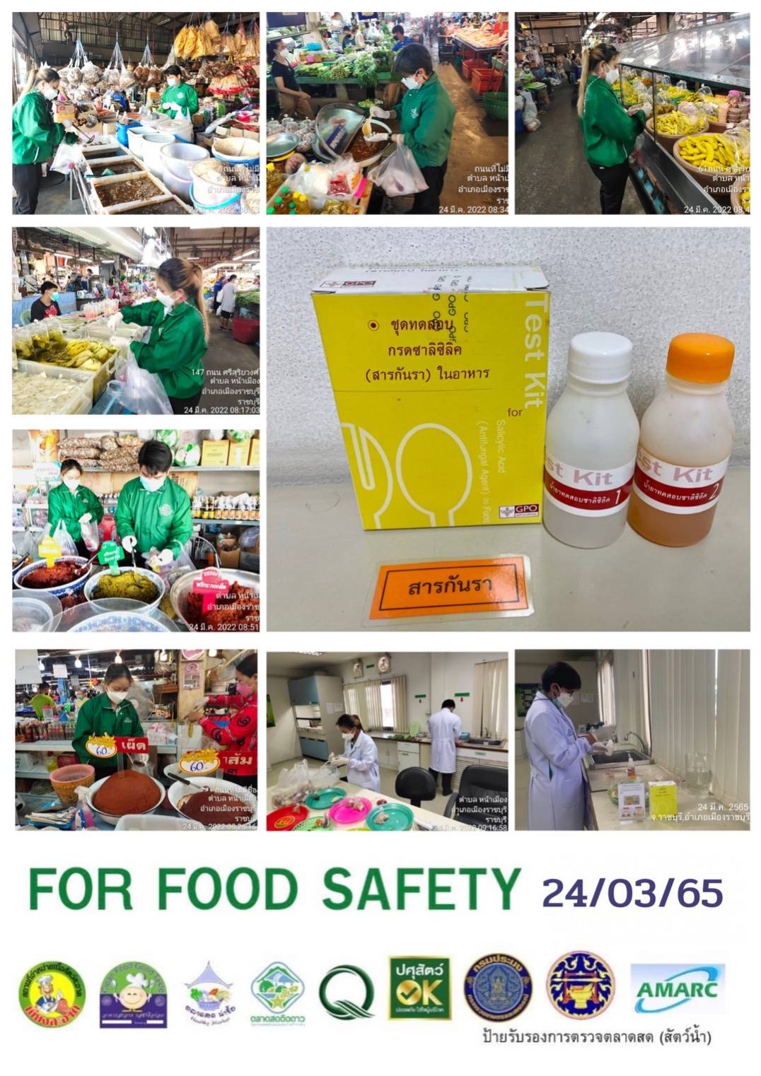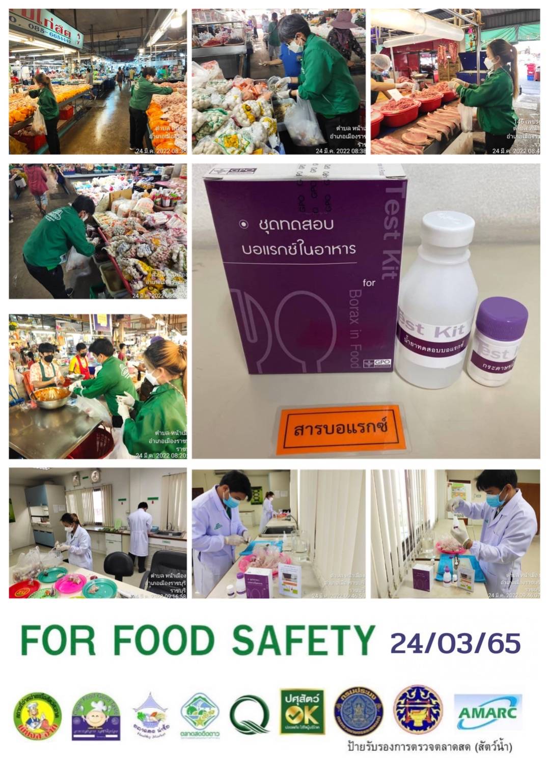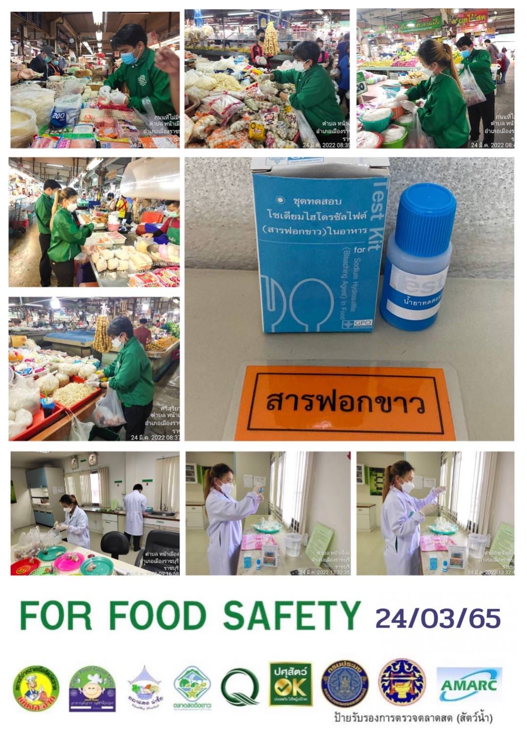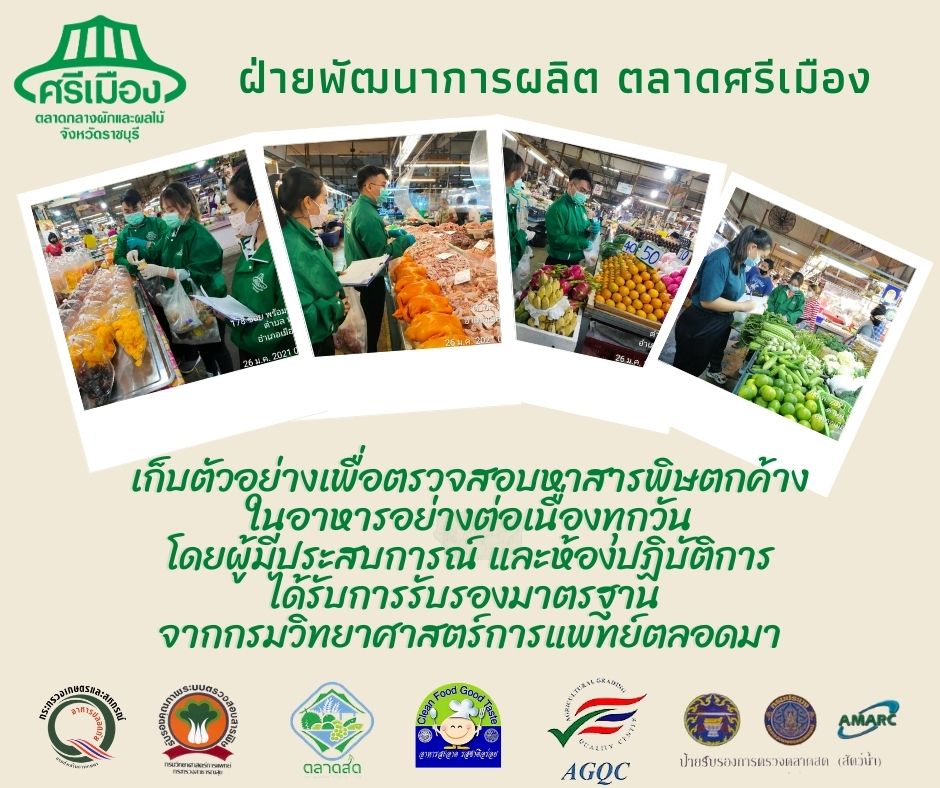 สรุปผลการตรวจสอบสารพิษตกค้างในผลผลิตการเกษตร​และผลิตภัณฑ์​อาหาร (ตลาดศรีเมือง)​ ประจำเดือน มีนาคม 2565 - GT จำนวน 1,098 ตัวอย่าง ไม่พบ​ 1,079 ตัวอย่าง พบในระดับปลอดภัย​ 19 ตัวอย่าง - GPO จำนวน 85 ตัวอย่าง ไม่พบ 85 ตัวอย่าง - บอแรกซ์​ 57 ตัวอย่าง ไม่พบ 57 ตัวอย่าง - ฟอร์มาลีน 36 ตัวอย่าง ไม่พบ 36 ตัวอย่าง - สารเร่งเนื้อแดง 21 ตัวอย่าง ไม่พบ 21 ตัวอย่าง - สารฟอกขาว 47 ตัวอย่าง ไม่พบ 47 ตัวอย่าง - สารกันรา 81 ตัวอย่าง ไม่พบ 81 ตัวอย่าง - สีสังเคราะห์​ 32 ตัวอย่าง ไม่พบ 32 ตัวอย่าง - โพลาร์ในน้ำมันทอดซ้ำ 5 ตัวอย่าง ไม่พบ 5 ตัวอย่าง - เชื้อโคลิฟอร์ม 95 ตัวอย่าง ไม่พบ 95 ตัวอย่า