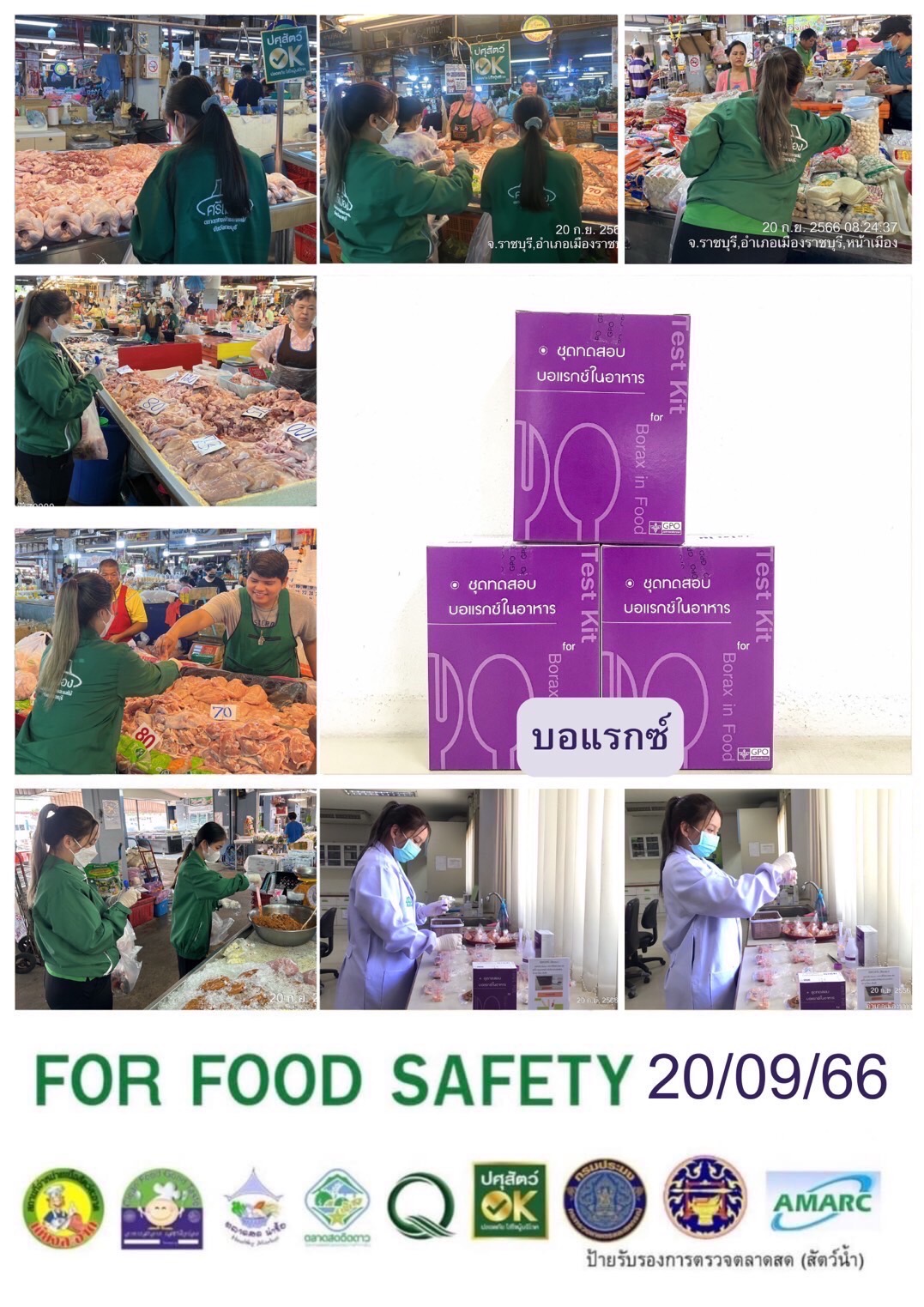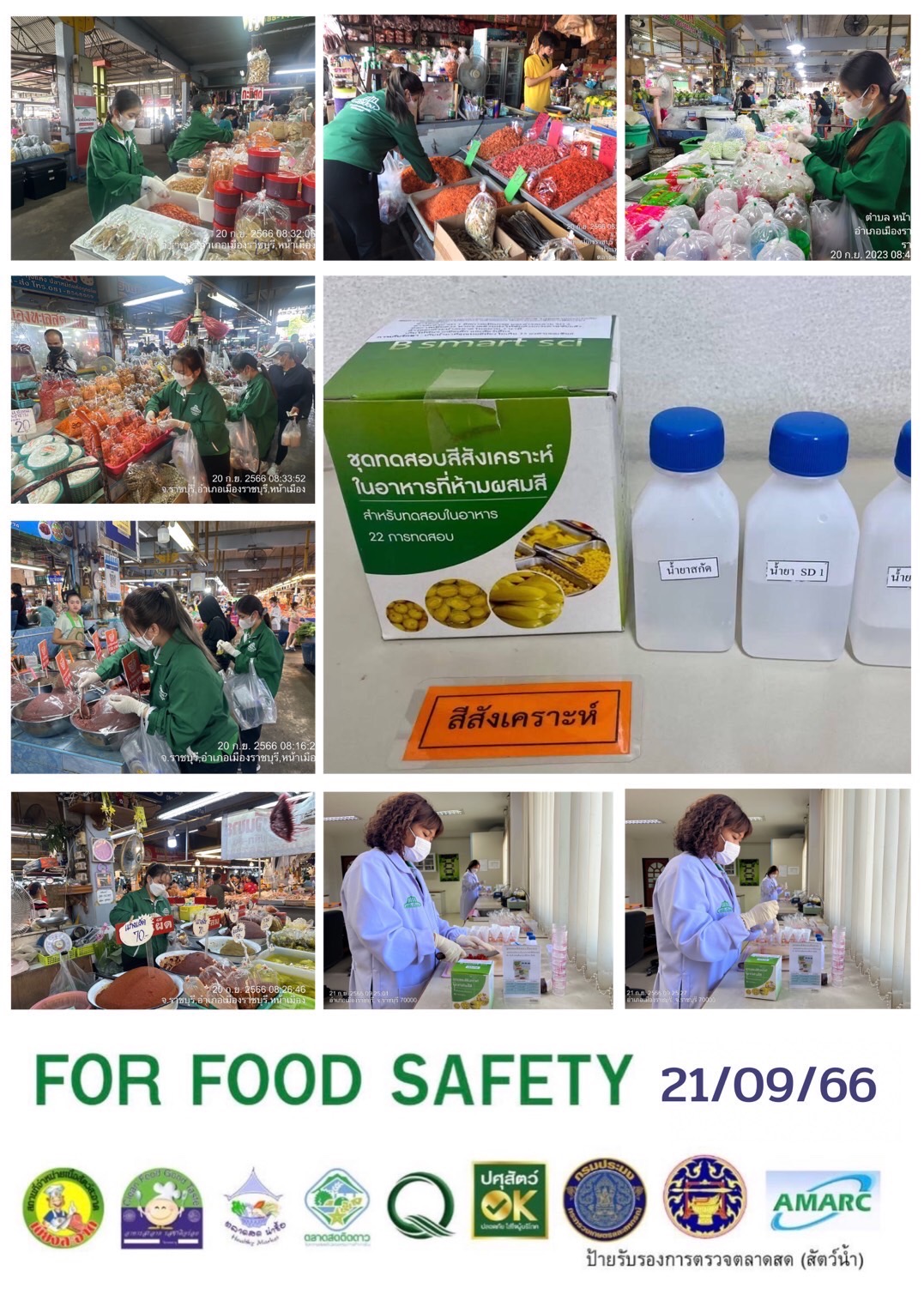 สรุปผลการตรวจสอบสารพิษตกค้างในผลผลิตการเกษตร​และผลิตภัณฑ์​อาหาร (ตลาดศรีเมือง)​ ประจำเดือน กันยายน 2566 - GT จำนวน 1291 ตัวอย่าง ไม่พบ​ 1238 ตัวอย่าง พบในระดับปลอดภัย​ 53 ตัวอย่าง - GPO จำนวน 154 ตัวอย่าง ไม่พบ 154 ตัวอย่าง - บอแรกซ์​ 65 ตัวอย่าง ไม่พบ 65 ตัวอย่าง - ฟอร์มาลีน 46 ตัวอย่าง ไม่พบ 46 ตัวอย่าง - สารเร่งเนื้อแดง 17 ตัวอย่าง ไม่พบ 17 ตัวอย่าง - สารฟอกขาว 50 ตัวอย่าง ไม่พบ 50 ตัวอย่าง - สารกันรา 74 ตัวอย่าง ไม่พบ 74 ตัวอย่าง - สีสังเคราะห์​ 43 ตัวอย่าง ไม่ 43 ตัวอย่าง - โพลาร์ในน้ำมันทอดซ้ำ 9 ตัวอย่าง ไม่พบ 9 ตัวอย่าง - สารกันบูด 20 ตัวอย่าง ไม่พบ 20 ตัวอย่าง - สารไนไตรท์ 21 ตัวอย่าง ไม่พบ 21 ตัวอย่าง - เชื้อโคลิฟอร์ม 239 ตัวอย่าง ไม่พบ 239 ตัวอย่าง