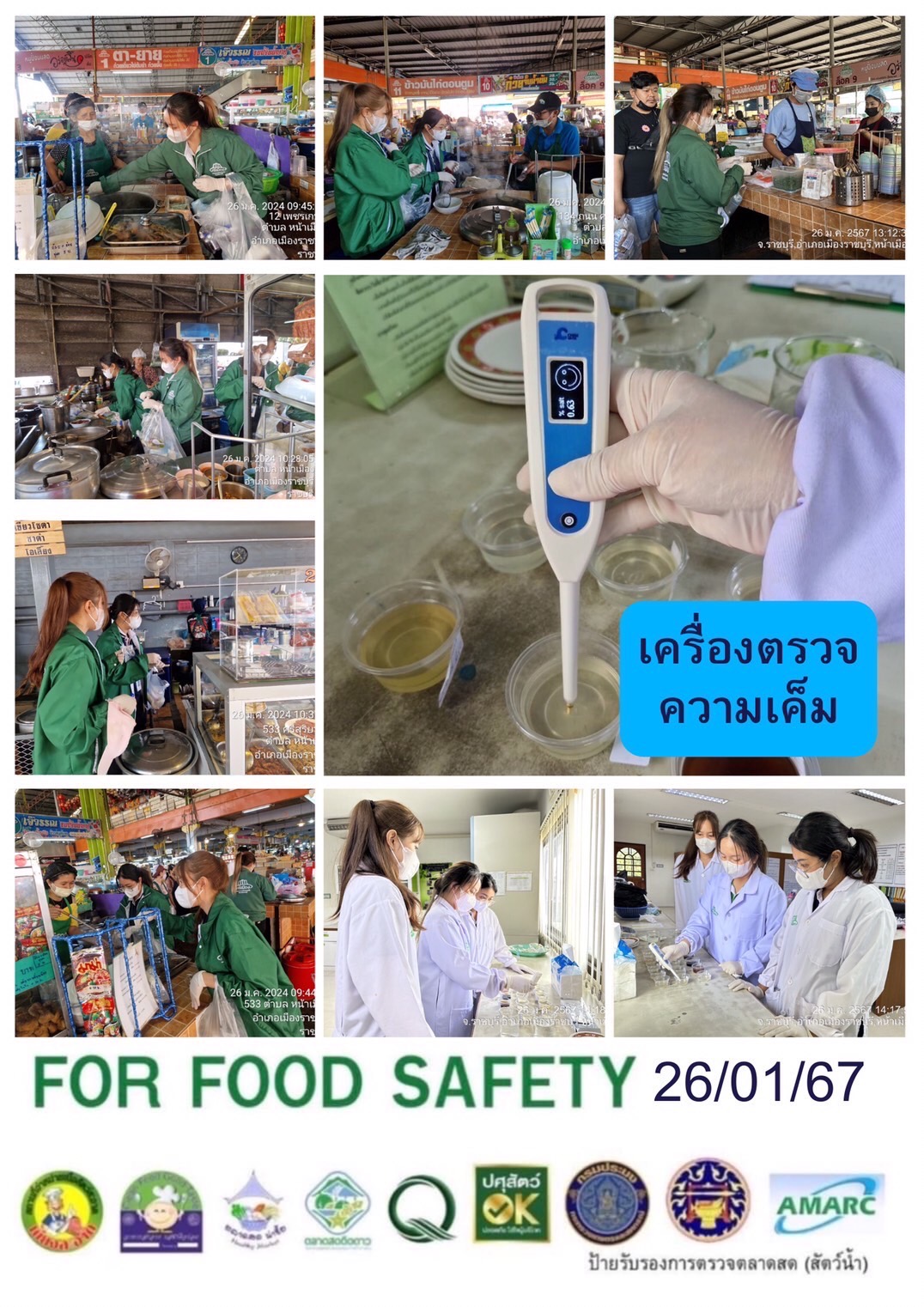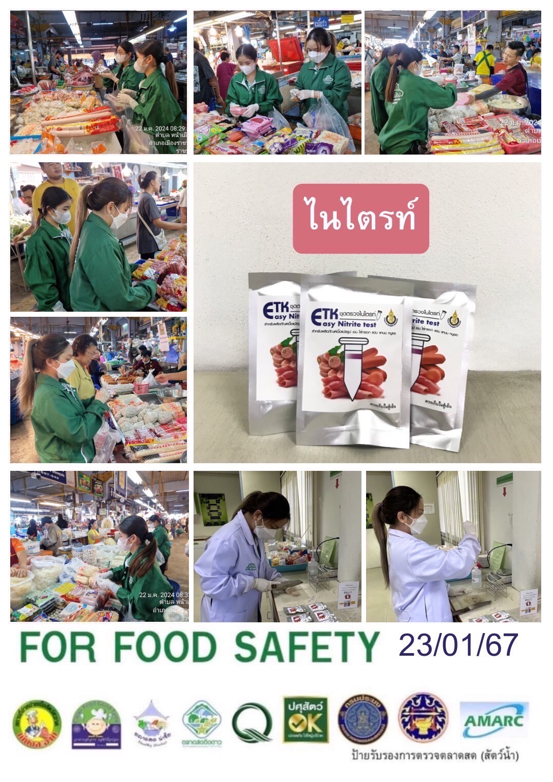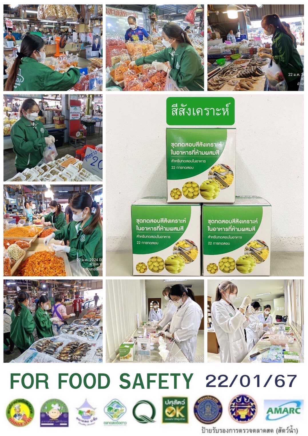 สรุปผลการตรวจสอบสารพิษตกค้างในผลผลิตการเกษตร​และผลิตภัณฑ์​อาหาร (ตลาดศรีเมือง)​ ประจำเดือน มกราคม 2567 - GT จำนวน 1,113 ตัวอย่าง ไม่พบ​ 1,091 ตัวอย่าง พบในระดับปลอดภัย​ 20 ตัวอย่าง พบในระดับไม่ปลอดภัย 2 ตัวอย่าง - GPO จำนวน 142 ตัวอย่าง ไม่พบ 0 ตัวอย่าง - บอแรกซ์​ 42 ตัวอย่าง ไม่พบ 42 ตัวอย่าง - ฟอร์มาลีน 42 ตัวอย่าง ไม่พบ 41 ตัวอย่าง พบไม่ปลอดภัย 1 ตัวอย่าง - สารเร่งเนื้อแดง 17 ตัวอย่าง ไม่พบ 17 ตัวอย่าง - สารฟอกขาว 50 ตัวอย่าง ไม่พบ 50 ตัวอย่าง - สารกันรา 50 ตัวอย่าง ไม่พบ 50 ตัวอย่าง - สีสังเคราะห์​ 37 ตัวอย่าง ไม่พบ 37 ตัวอย่าง - โพลาร์ในน้ำมันทอดซ้ำ 13 ตัวอย่าง ไม่พบ 13 ตัวอย่าง - สารกันบูด 21 ตัวอย่าง ไม่พบ 21 ตัวอย่าง - สารไนไตรท์ 18 ตัวอย่าง ไม่พบ 18 ตัวอย่าง - เชื้อโคลิฟอร์ม 456 ตัวอย่าง ไม่พบ 456 ตัวอย่าง -โซเดียม 15 ตัวอย่าง ไม่พบ 15 ตัวอย่าง