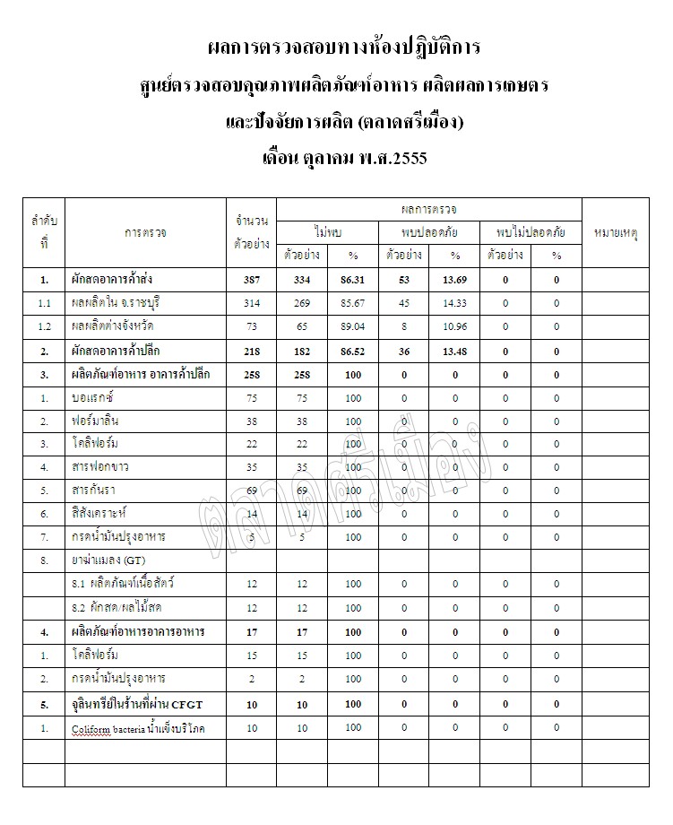 ผลการตรวจสอบทางห้องปฏิบัติการ เดือน ตุลาคม พ.ศ 2555    4 ม.ค. 2556