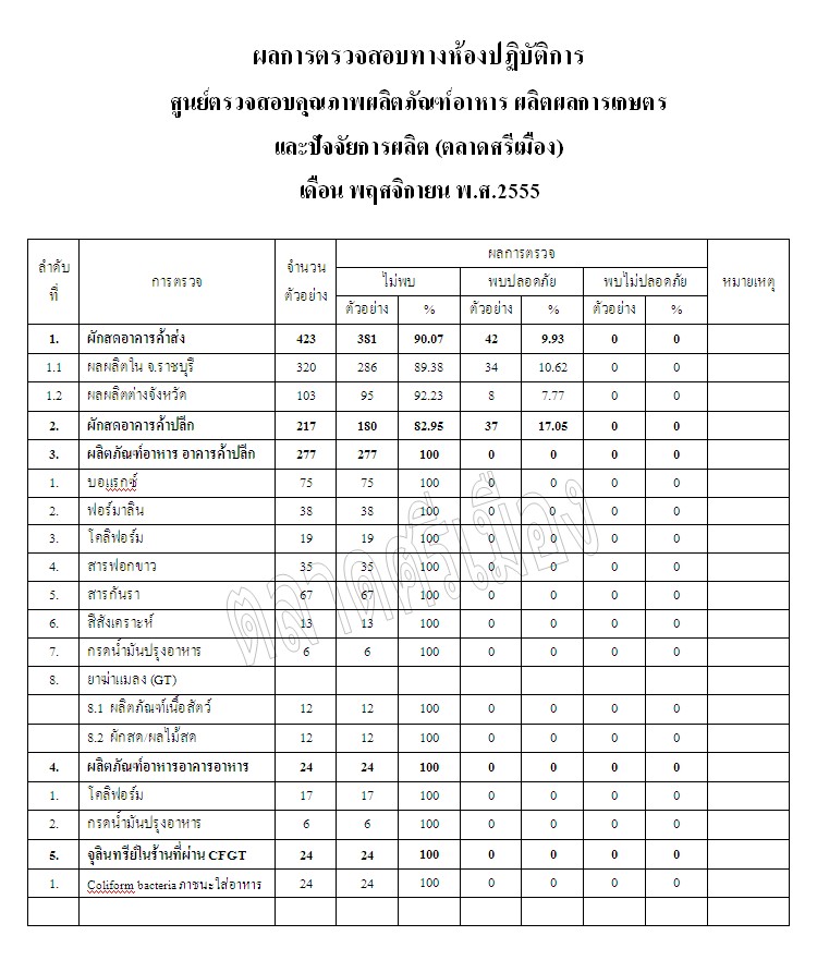 ผลการตรวจสอบทางห้องปฏิบัติการ เดือน พฤศจิกายน พ.ศ 2555    1 ก.พ. 2556