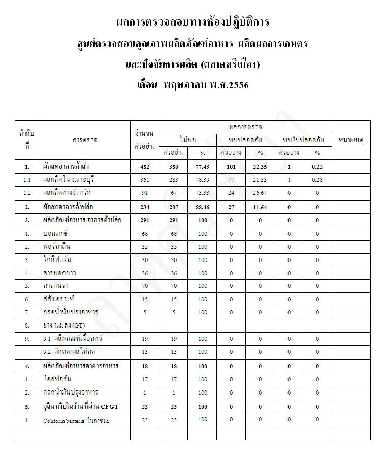 ผลการตรวจสอบทางห้องปฏิบัติการ เดือน พฤษภาคม พ.ศ 2556    11 ก.ค. 2556