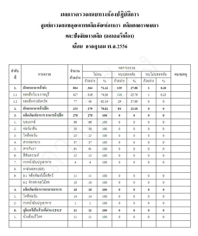 ผลการตรวจสอบทางห้องปฏิบัติการ เดือน กรกฎาคม พ.ศ 2556    20 ก.ย. 2556