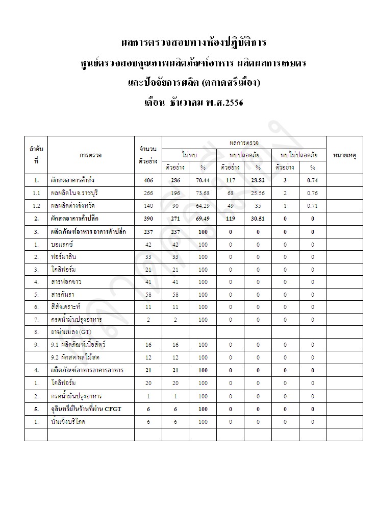 ผลการตรวจสอบทางห้องปฏิบัติการ เดือน ธันวาคม พ.ศ 2556
