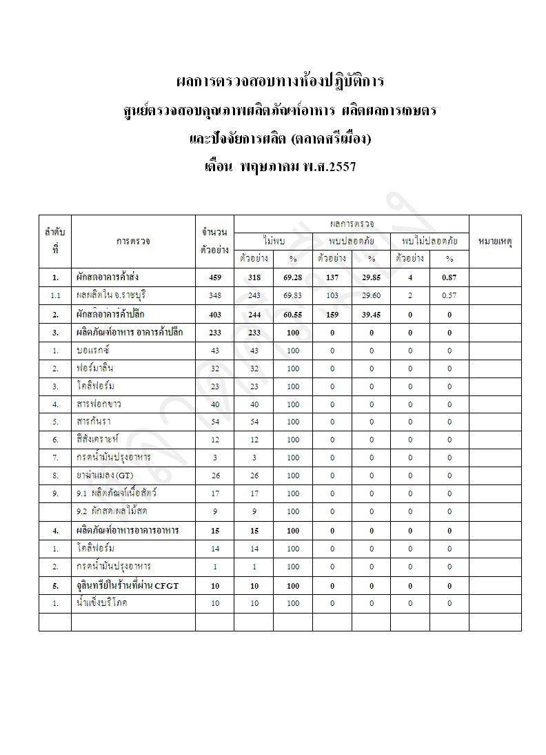 ผลการตรวจสอบทางห้องปฏิบัติการ เดือน พฤษภาคม พ.ศ 2557