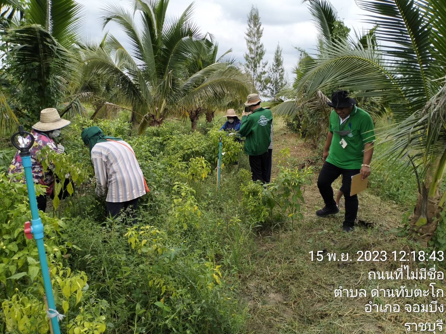 15 พ.ย 66 ภาคบ่าย ฝ่ายพัฒนาการผลิต ลงพื้นที่ตรวจแปลง สมาชิกกลุ่มบ้านหนองศรีนวล ต.ด่านทับตะโก อ.จอมบึง จ.ราชบุรี รวม5 ราย 12แปลง 6ชนิดพืช ได้แก่ ถั่วฝักยาว,กระเจี๊ยบเขียว,มะระจีน,พริก,ผักชีไทย,มะระตุ้งติ้ง(ขี้นก) สมัครเข้าจำหน่ายในโครงการผักปลอดภัย และสมาชิกดังกล่าวทั้ง5คนได้มีความประสงค์ขอใบรับรองgap ฝ่ายได้ดำเนินการแนะนำการเตรียมความพร้อม เช่นการเก็บเกี่ยวผลผลิต,การบันทึก,การบรรจุ,และอื่นๆในหลักเกณฑ์การขอgap ในการลงพื้นที่วันนี้ได้นำนักศึกษาฝึกงานสาขาพืชผัก มหาวิทยาลัยแม่โจ้ จังหวัดเชียงใหม่ ศึกษาเรียนรู้ขบวนการตรวจแปลงและการเตรียมความพร้อมของเกษตรกรในการขอใบรับรองgapจาก กรมวิชาการเกษตร จากการวัดค่าph ดินและน้ำ ทุกแปลงอยู่ที่5.5-6.9