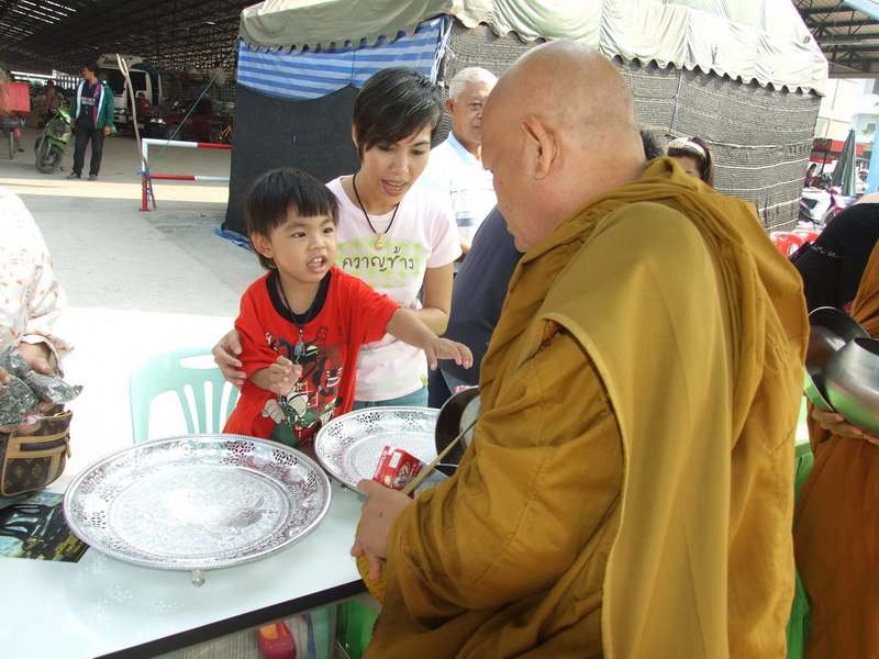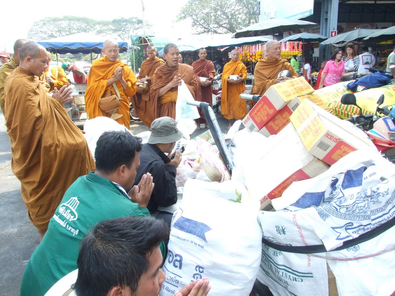 พระอาจารย์มิตซูโอะรับบิณฑบาตรที่ตลาดศรีเมือง