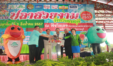 นายนิสิต จันทร์สมวงศ์ ผู้ว่าราชการจังหวัดราชบุรี เป็นประธานในพิธีเปิดงาน “มหกรรมปลาสวยงาม ประจำปี 2557 พร้อมด้วย นายชนินทร์ แสงรุ่งเรือง ประมงจังหวัดราชบุรี นายนภินทร – นางวีณา ศรีสรรพางค์ ผู้บริหารระดับสูงตลาดศรีเมือง และแขกผู้มีเกียติ ร่วมในพิธีเปิด วันที่ 3 ส.ค.57 นายนิวัติ สุธีมีชัยกุล อธิบดีกรมประมง เป็นประธานพร้อมมอบเกียรติบัตรแก่ผู้ชนะ การประกวดปลาสวยงาม มอบใบรับรองมาตรฐานการจัดฟาร์มเพาะเลี้ยงปลาสวยงามเพื่อการส่งออก พร้อมบรรยายการสนับสนุนและการส่งเสริมปลาสวยงามตามแผนยุทธศาสตร์ปลาสวยงาม พร้อมกันนี้ ยังจัดให้มีบรรยายเรื่องแนวทางในการพัฒนาตลาดปลาสวยงามบ้านโป่ง โดยคุณนภินทร ศรีสรรพางค์ บิ๊กบอสตลาดศรีเมือง และการเสวนาเชื่อมโยงตลาดกลางปลาสวยงาม โดยมีกลุ่มเกษตรกรและผู้ประกอบการในจังหวัดราชบุรีและใกล้เคียงร่วมรับฟัง ซึ่งตลอด 3 วันของการจัดงาน ได้รับความสนใจจากประชาชนร่วมชมงานเป็นจำนวนมาก