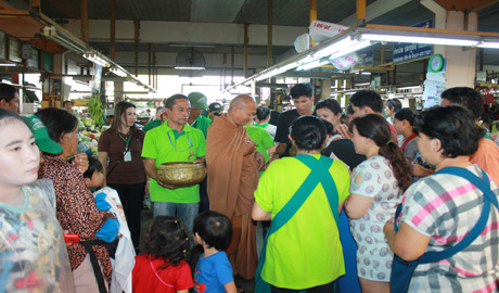 พระอาจารย์อลงกต เจ้าอาวาสวัดพระบาทน้ำพุ จ.ลพบุรี เดินทางมารับบิณฑบาตรข้าวสาร อาหารแห้ง และยาเวชภัณฑ์ ที่ตลาดศรีเมือง เพื่อนำไปช่วยเหลือผู้ป่วยที่ติดเชื้อ HIV. ต่อไป โดยตลาดศรีเมืองนำโดยคุณวีณา ศรีสรรพางค์ รองกรรมการผู้จัดการตลาดศรีเมือง พร้อมด้วยผู้บริหาร พนักงาน ผู้ประกอบการค้า ได้ร่วมใส่บาตรข้าวสารอาหารแห้ง ของใช้ที่จำเป็น และถวายภัตตาหารเพล เมื่อวันที่ 31 ตุลาคม 2557