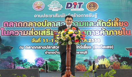 นายสุชาติ สินรัตน์ รองอธิบดีกรมการค้าภายใน เป็นประธานเปิดงานประชาสัมพันธ์สร้างการรับรู้ตลาดกลางปลาสวยงามและสัตว์เลี้ยง ในความส่งเสริมของกรมการค้าภายใน และมอบหนังสือรับรองตลาดกลางปลาสวยงามและสัตว์เลี้ยง เพื่อรับรองการเป็นตลาดกลางสินค้าเกษตรอย่างเป็นทางการ ให้กับคุณนภินทร ศรีสรรพางค์ กรรมการผู้จัดการตลาดกลางปลาสวยงาม และสัตว์เลี้ยง ฟิช วิลเลจ โดยมี นายพิพัฒน์ เอกภาพันธ์ รองผู้ว่าราชการจังหวัดราชบุรี กล่าวต้อนรับ และนายวัชรศักดิ์ พรหมบุญ ผู้อำนวยการกองส่งเสริมและบริหารระบบตลาด กรมการค้าภายใน กล่าวรายงานวัตถุประสงค์ เมื่อวันที่ 11 กันยายน 2558 ณ ฟิช วิลเลจ