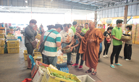 คุณนภินทร - คุณวีณา ศรีสรรพางค์ ผู้บริหารระดับสูงตลาดศรีเมือง พร้อมผู้บริหาร ร่วมให้การต้อนรับพระอาจารย์อลงกต เจ้าอาวาสวัดพระบาทน้ำพุ จ.ลพบุรี เดินทางมารับบิณฑบาตรข้าวสาร อาหารแห้ง และยาเวชภัณฑ์ ที่ตลาดศรีเมือง เพื่อนำไปช่วยเหลือผู้ป่วยที่ติดเชื้อ HIV. และเด็กกำพร้าที่ยากไร้ ในโครงการเมตตาธรรมค้ำจุนโลก โดยตลาดศรีเมืองนำโดยคุณวีณา ศรีสรรพางค์ รองกรรมการผู้จัดการตลาดศรีเมือง ผู้บริหาร พนักงาน ผู้ประกอบการค้า ได้ร่วมใส่บาตรข้าวสารอาหารแห้ง ของใช้ที่จำเป็น และถวายภัตตาหารเพล เมื่อวันที่ 30 ตุลาคม 2558