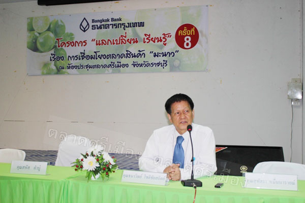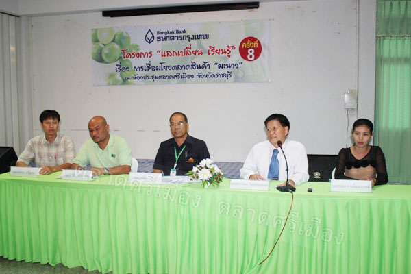 ธนาคารกรุงเทพ จำกัด (มหาชน) ร่วมกับตลาดศรีเมือง จัดการเสวนาแลกเปลี่ยนเรียนรู้ ครั้งที่ 2 เรื่อง “การเชื่อมโยงตลาดสินค้ามะนาว” ให้กับกลุ่มผู้ปลูกมะนาวแห่งประเทศไทยและผู้ผลิตจำหน่ายผักพื้นบ้าน โดยมีอาจารย์ สหัส คำบู่ ผู้ช่วยกรรมการผู้จัดการตลาดศรีเมือง เป็นประธานกล่าวเปิดการเสวนา ณ ห้องประชุมชั้น 3 สำนักงานตลาดศรีเมือง เมื่อวันที่ 15 พฤษภาคม 2555
