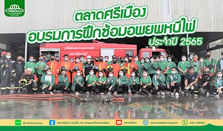ตลาดศรีเมือง โดยคณะกรรมการความปลอดภัย อาชีวอนามัยและสภาพแวดล้อมในการทำงาน (คปอ.) จัดการอบรมการฝึกซ้อมอพยพหนีไฟ ประจำปี 2565 โดยมีคุณณพัชรัฎฐ์ ภูริพุทธานนท์ ผช.ผจก.ฝ่ายธุรการ - จปว. กล่าวเปิดการอบรม ซึ่งมีผู้บริหาร พนักงาน ทุกฝ่าย ทุกแผนก ร่วมพิธีเปิดและเข้ารับการอบรม มีทีมวิทยากรจากสนง.ป้องกันและบรรเทาสาธารณภัย เทศบาลเมืองราชบุรี มาบรรยายให้ความรู้ พร้อมฝึกปฏิบัติ ณ บริเวณลานจอดรถ 3 หน้าอาคารดอกไม้ ตลาดศรีเมือง เมื่อวันที่ 21 พ.ย.65 สำหรับการอบรมครั้งนี้จัดขึ้นเพื่อเสริมสร้างความรู้และประสบการณ์ รวมถึงป้องกันในกรณีที่อาจจะเกิดเหตุฉุกเฉินถึงขั้นทำให้เสียชีวิต