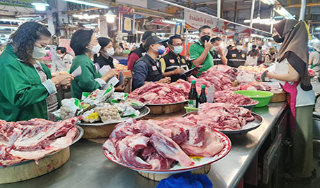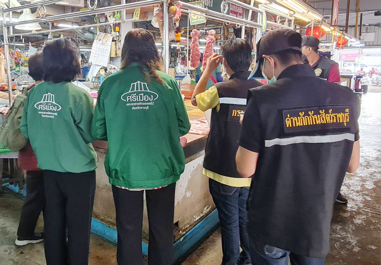 คุณสลิลลา รุจนวงศ์ พร้อมด้วยคุณอรอรรณีย์ ธารประสิทธิ์ ที่ปรึกษาตลาดศรีเมือง (ด้านอาหารปลอดภัย) คุณภูวนัย ฉิมพิมล ผช.ผจก.แผนกตลาดสด ร่วมให้การต้อนรับ ส.พ.ญ.สุชาดา สุสุทธิ นายสัตวแพทย์ชำนาญการ และทีมจากสำนักงานปศุสัตว์จ.ราชบุรี/ นายนพดล กันเกตุ จากด่านกักกันสัตว์ราชบุรีและทีมฯ พร้อมนำลงพื้นที่ตรวจติดตามสถานที่จำหน่ายเนื้อสัตว์ ตามโครงการเนื้อสัตว์ปลอดภัยใส่ใจผู้บริโภค (ปศุสัตว์ O.K.) ที่อาคาร 8 ตลาดสด เมื่อวันที่ 12 มกราคม 2566 โดยเป็นการตรวจประเมิน เพื่อรับรองป้ายปศุสัตว์ OK ทุก 3 ปี ซึ่งจะต้องมีการตรวจติดตาม และประเมินทุกปี ในวันนี้ได้ทำการตรวจร้านจำหน่ายเนื้อหมูจำนวน 14 ร้าน และร้านไก่ จำนวน 6 ร้าน ด้านสุขลักษณะสถานที่/แผงจำหน่าย, สุขอนามัยของผู้จำหน่าย และเอกสารใบอนุญาตทำการค้า ประเภทหมู/ไก่ มีการรับรองจากแหล่งผลิตที่ได้มาตรฐาน ผลการตรวจ พบว่า สินค้า เนื้อหมู /ไก่ ที่วางจำหน่าย มีหลักฐานฯ ส่งมาจากแหล่งผลิตที่ได้ตามมาตรฐาน ปศุสัตว์ OK ทุกร้าน จึงเป็นการสร้างความมั่นใจให้กับผู้บริโภค ตามนโยบายตามนโยบายยุทธศาสตร์อาหารปลอดภัย และต้อนรับเทศกาลตรุษจีนที่กำลังจะมาถึงด้วย