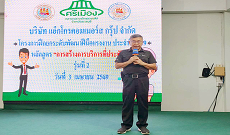 คุณภาคิน ศรีสรรพางค์ กรรมการผู้จัดการ เป็นประธานกล่าวเปิดการฝึกอบรมยกระดับพัฒนาฝีมือแรงงานประจำปี 2569 หลักสูตร “การสร้างการบริการที่ประทับใจ” จัดโดยแผนกธุรการบุคคล งานฝึกอบรมและพัฒนาบุคลากร ฝ่ายธุรการ - การเงินตลาดศรีเมือง ซึ่งแบ่งการอบรม เป็น 2 รุ่นๆ ละ 50 คน ระหว่างวันที่ 2 - 3 เมษายน 2569 โดยมีผู้บริหาร พนักงานร่วมในพิธีเปิด และเข้ารับการฝึกอบรม โดยมี อ.รจนา มังคลรังษี ผอ.รพ.สต.บ้านคูบัว อ.ภานุสรณ์ ล้ำเลิศ ผอ.รพ.สต.บ้านเกาะลอย เป็นวิทยากรบรรยายให้ความรู้ ณ ห้องประชุมชั้น 3 สำนักงานตลาดศรีเมือง เมื่อวันที่ 2 เมษายน 2569 สำหรับการฝึกอบรมครั้งนี้มีวัตถุประสงค์ เพื่อให้พนักงานทุกคนได้นำองค์ความรู้ด้านการบริการไปปรับใช้ให้เกิดประโยชน์สูงสุด รวมทั้งส่งผลต่อประสิทธิภาพในการทำงาน โดยในวันที่ 2 ของการอบรม (3 เมษายน 2569 ) คุณกฤช รังสิเสนา ณ อยุธยา ผู้ช่วยกรรมการผู้จัดการ กล่าวให้โอวาทและมอบนโยบายการปฏิบัติงานแก่ผู้เข้ารับการอบรม