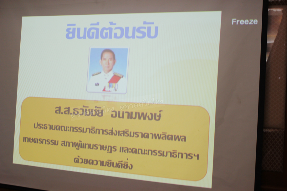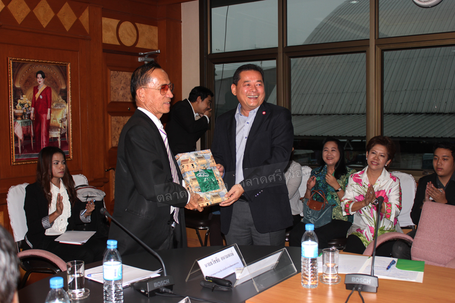 คณะกรรมาธิการส่งเสริมราคาผลิตผลเกษตรกรรม สภาผู้แทนราษฎร จัดการประชุมปรึกษาหารือการดำเนินงาน นำโดยนายธวัชชัย อนามพงษ์ ประธานคณะกรรมาธิการส่งเสริมราคาผลิตผลเกษตรกรรม ส.ส.ไตรรงค์ สุวรรณคีรี ประธานคณะกรรมมาธิการที่ปรึกษาฯ โดยมีนายชนม์ชื่น บุญญานุสาสน์ ผวจ.รบ. ส.ส.นภินทร ศรีสรรพางค์ รองประธานคณะกรรมาธิการส่งเสริมราคาผลิตผลเกษตรกรรม หัวหน้าส่วนราชการ จ.ราชบุรี ให้การต้อนรับ ณ ห้องประชุมสำนักงานตลาดศรีเมือง เมื่อวันที่ 12 พ.ย.55 พร้อมกันนี้คณะกรรมมาธิการฯ ได้เยี่ยมชมบริเวณต่างๆ ของตลาดศรีเมืองด้วย