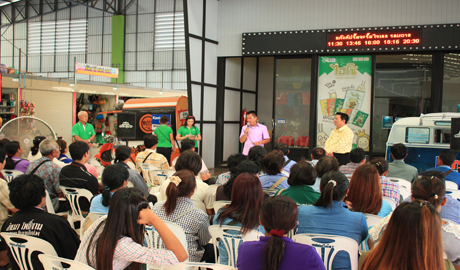 คุณนภินทร - คุณวีณา ศรีสรรพางค์ ผู้บริหารระดับสูงตลาดศรีเมือง พร้อมผู้บริหาร ร่วมให้การต้อนรับ นายชาตรี จันทร์วีระชัย นายอำเภอกุยบุรี พร้อมด้วยนายวินัย แทนคุณ เกษตรอำเภอกุยบุรี จังหวัดประจวบคีรีขันธ์ นำคณะเกษตรกรที่มีอาชีพทำนา มาศึกษาดูงานที่ตลาดศรีเมือง โดยมีคุณประดิษฐ เหลืองทองเจริญ ผู้ช่วยกรรมการผู้จัดการตลาดศรีเมือง คุณธณภน พัฒนา ผู้จัดการฝ่ายพัฒนาการผลิต ให้การต้อนรับ ณ บริเวณอาคารศรีเมืองอาเซียน เมื่อวันที่ 20 และ 21 สิงหาคม 2558 พร้อมกันนี้ คณะศึกษาดูงาน ได้ขึ้นรถโมบายเยี่ยมชมบริเวณต่างๆ ภายในตลาดด้วย
