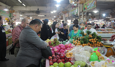 คุณประดิษฐ เหลืองทองเจริญ ผช.กก.ผจก.ตลาดศรีเมือง และคุณอนันต์วัฒน์ มาศพฤกษากุล ผช.ผจก.ฝ่ายธุรการและการเงิน ร่วมให้การต้อนรับคณะศึกษาดูงานจากสำนักส่งเสริมและฝึกอบรม กำแพงแสน ม.เกษตรศาสตร์ ซึ่งเป็นผู้ประกอบการเกษตรการกลุ่มผู้ผลิตและเจ้าหน้าที่จากประเทศเยอรมนี และประเทศฟิลิปปินส์ โครงการศึกษาดูงานหลักสูตร "Good Manufacturing Practices in Thailand" ในโอกาสเดินทางมาศึกษาดูงานที่ตลาด ศรีเมือง ณ ห้องประชุมชั้น 2 สำนักงานตลาดศรีเมือง เมื่อวันที่ 5 เมษายน 2560