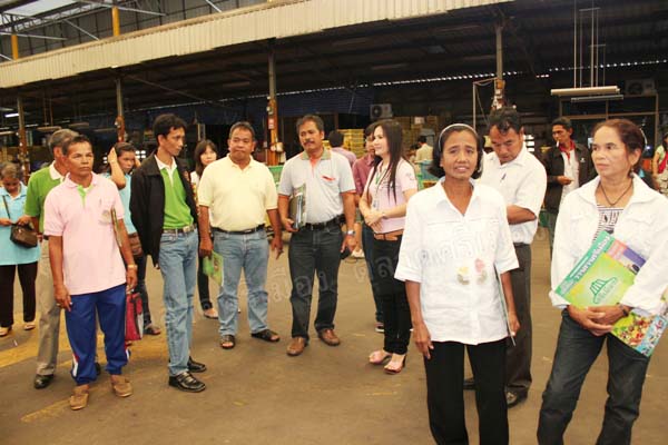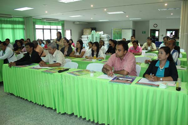 คุณประดิษฐ เหลืองทองเจริญ ผู้ช่วยกรรมการผู้จัดการตลาดศรีเมือง และคุณธนภณ พัฒนา ผู้จัดการฝ่ายพัฒนาการผลิต ให้การต้อนรับคุณประจวบ เพ็งประไพ นักวิชาการส่งเสริมการเกษตรชำนาญการ พร้อมคณะศึกษาดูงานจากสำนักงานเกษตรจังหวัดพัทลุง ณ ห้องประชุมชั้น 3 สำนักงานตลาดศรีเมือง เมื่อวันที่ 29 พฤษภาคม 2555 พร้อมกันนี้คุณปิยนุช ภู่สวัสดิ์ หัวหน้าฝ่ายประชาสัมพันธ์ ได้นำคณะศึกษาดูงานเยี่ยมชมตลาดศรีเมืองในครั้งนี้ด้วย