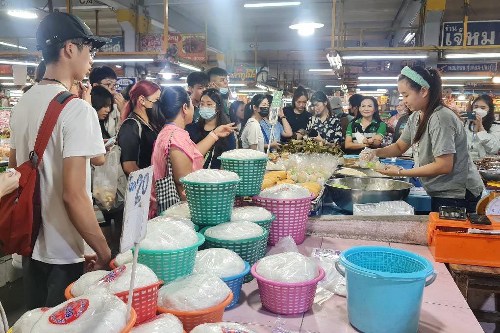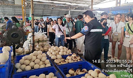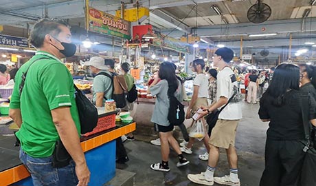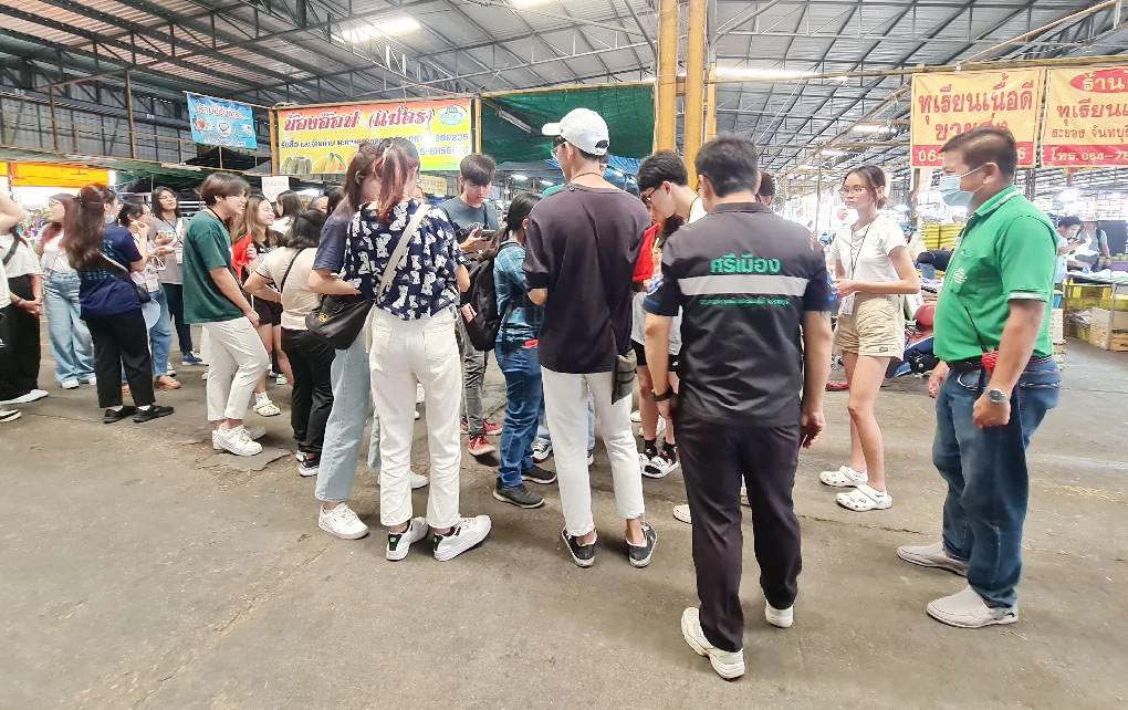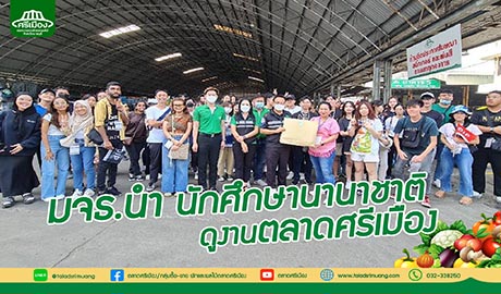 วันที่ 14 มีนาคม 2566 คุณปฐมพร เจียสกุล ผจก.ฝ่ายพัฒนาการตลาดและ ประชาสัมพันธ์ คุณวิชิต ภู่พันธ์ศรี ผช. ผจก.ฝ่ายค้าส่งผลไม้ และทีมงานฝ่ายพัฒนาการตลาดฯ ฝ่ายค้าส่งผลไม้ ฝ่ายตลาดสด ร่วมให้การต้อนรับคณะอาจารย์ และนักศึกษาคณะวิศวกรรมศาสตร์ สังคมศาสตร์ และสถาปตยกรรมศาสตร์ จาก Ngee Ann Polytechnic (Npoly) ประเทศสิงคโปร์ (ซึ่งประกอบไปด้วยหลายสัญชาติ) และจากมหาวิทยาลัยเทคโนโลยีพระจอมเกล้าธนบุรี จำนวน 85 คน ซึ่งเป็นผู้เข้าอบรมตามโครงการฝึกอบรมเพื่อส่งเสริมความเข้าใจในด้านการเปลี่ยนแปลงทางสังคมและวัฒนธรรมสู่การพัฒนานวัตกรรมของศูนย์นวัตกรรมเพื่อสังคม (CIS) สถาบันพัฒนาและฝึกอบรมโรงงานต้นแบบ (สรบ.) มจธ. ในโอกาสเดินทางมาศึกษาดูงานที่ตลาดศรีเมือง ณ บริเวณโดม อาคาร 3 จอดรถซื้อผลไม้ ตลาดศรีเมืองโดยทางคณะได้ให้ความสนใจเกี่ยวกับการบริหารจัดการตลาด และได้ลงพื้นที่เยี่ยมชมบริเวณต่างๆ ภายในตลาด ในการศึกษาพฤติกรรมการบริโภคของคนในพื้นที่ เพื่อนำไปบูรณาการวางแผนวิเคราะห์ข้อมูลเกี่ยวกับการเรียนการสอนต่อไป