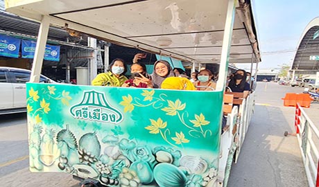 คุณบำรุง สังข์สว่าง ผจก.ฝ่ายพัฒนาการผลิต คุณสิทธิโชค แสนสีมน ผจก.ฝ่ายค้าส่งผัก คุณปฐมพร เจียสกุล ผจก.ฝ่ายพัฒนาการตลาดและประชาสัมพันธ์ พร้อมด้วยทีมงานฝ่ายพัฒนาการตลาดฯ ร่วมให้การต้อนรับ คุณนฤมล แก้วมุกดากุล พาณิชย์จังหวัดนราธิวาส ในโอกาสนำคณะเกษตรกร ผู้ประกอบการ จาก 3 จังหวัดชายแดนภาคใต้ (ยะลา ปัตตานี และนราธิวาส) พร้อมเจ้าหน้าที่จากสำนักงานพาณิชย์จังหวัดนราธิวาส ในโครงการพัฒนาเศรษฐกิจการค้าเสริมสร้างความเข้มแข็งเศรษฐกิจฐานรากชายแดนใต้ จำนวน 54 คนเดินทางมาศึกษาดูงานที่ตลาดศรีเมือง พร้อมกับพบปะพูดคุยแลกเปลี่ยนความคิดเห็นในการสร้างและเพิ่มช่องทางการตลาดสินค้าเกษตร ณ ห้องประชุมชั้น 3 สำนักงานตลาดศรีเมือง เมื่อวันที่ 3 มีนาคม 2566 ในการนี้ คณะศึกษาดูงาน ได้ขึ้นรถโมบายเยี่ยมชมบริเวณโดยรอบตลาดด้วย