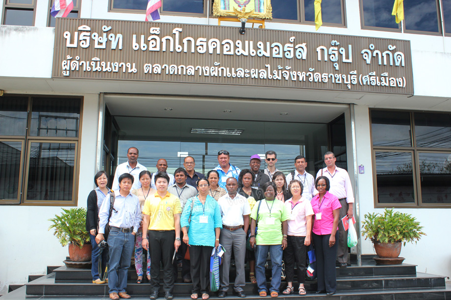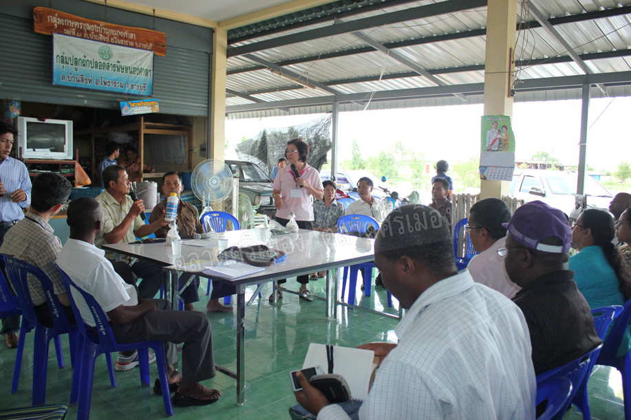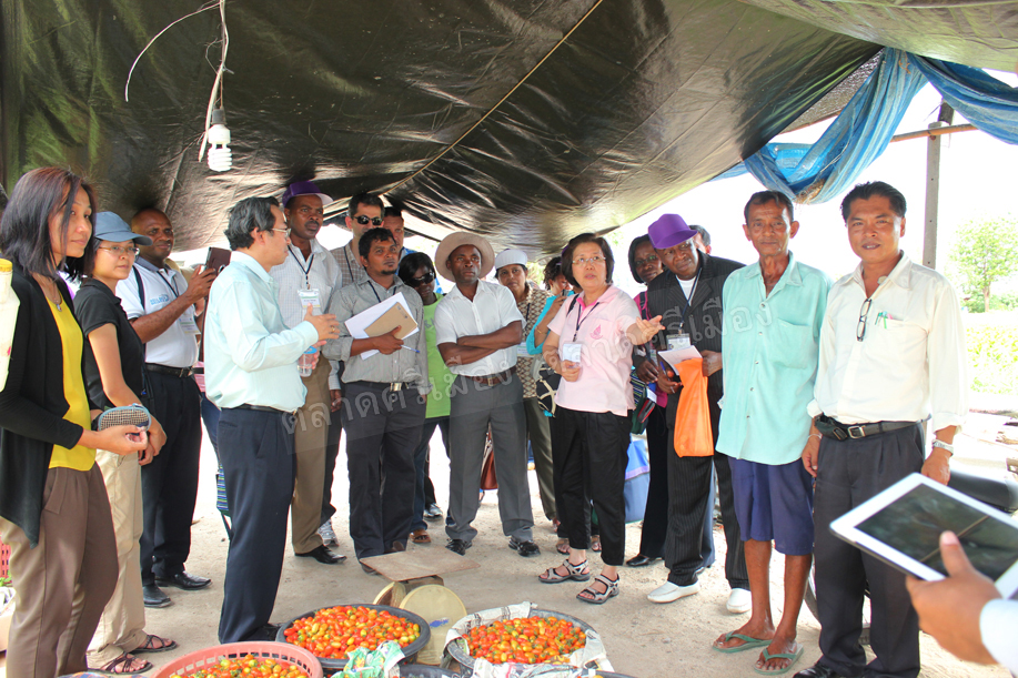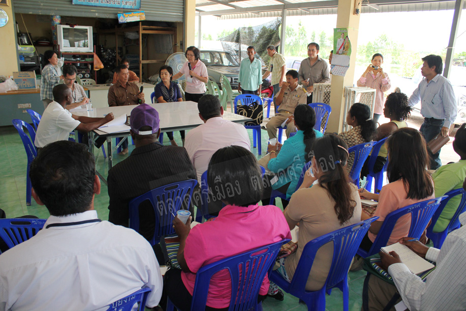 คุณสหัส คำบู่ ผช.กก.ผจก.ตลาดศรีเมือง ให้การต้อนรับคณะศึกษาดูงานจากมหาวิทยาลัยมหิดล ซึ่งเป็นผู้เข้ารับการอบรมเรื่อง “Thailand food and Nutrition Security” จากประเทศต่างๆ 15 ประเทศ ในโอกาสเดินทางมาศึกษาดูงานที่ตลาดศรีเมือง เมื่อวันที่ 20 พ.ค.56 เพื่อแลกเปลี่ยนเรียนรู้ด้านอาหารปลอดภัย พร้อมกันนี้คณะศึกษาดูงานได้เยี่ยมชมการตรวจสอบสารพิษจากฝ่ายพัฒนาการผลิต และเยี่ยมชมแปลงเกษตรปลอดสารพิษของเกษตรกรในเครือข่ายของตลาดศรีเมืองที่ตำบลบ้านสิงห์ อ.โพธาราม ด้วย