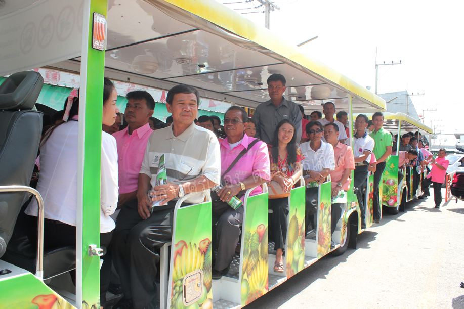 คุณนภินทร – คุณวีณา ศรีสรรพางค์ บิ๊กบอสของตลาดศรีเมือง ให้การต้อนรับคุณประยงค์ จันทเต็ง นายอำเภอนามน จังหวัดกาฬสินธุ์ และคุณสุภางค์ จันทเต็ง ภริยา ในโอกาสนำคณะหัวหน้าส่วนราชการ ผู้บริหารองค์กรปกครองส่วนท้องถิ่น กำนัน ผู้ใหญ่บ้านของอำเภอนามน มาศึกษาดูงานที่ตลาดศรีเมือง เมื่อวันที่ 25 พ.ค.56 เพื่อศึกษาข้อมูลการดำเนินงานของตลาดศรีเมือง อันจะนำไปสู่การเพิ่มประสิทธิภาพและการส่งเสริมการผลิตพืชผักผลไม้ปลอดสารพิษของชาวอำเภอนามนต่อไป พร้อมกันนี้คณะศึกษาดูงานได้นั่งรถโมบายเยี่ยมชมบริเวณต่างๆ ของตลาดศรีเมืองด้วย