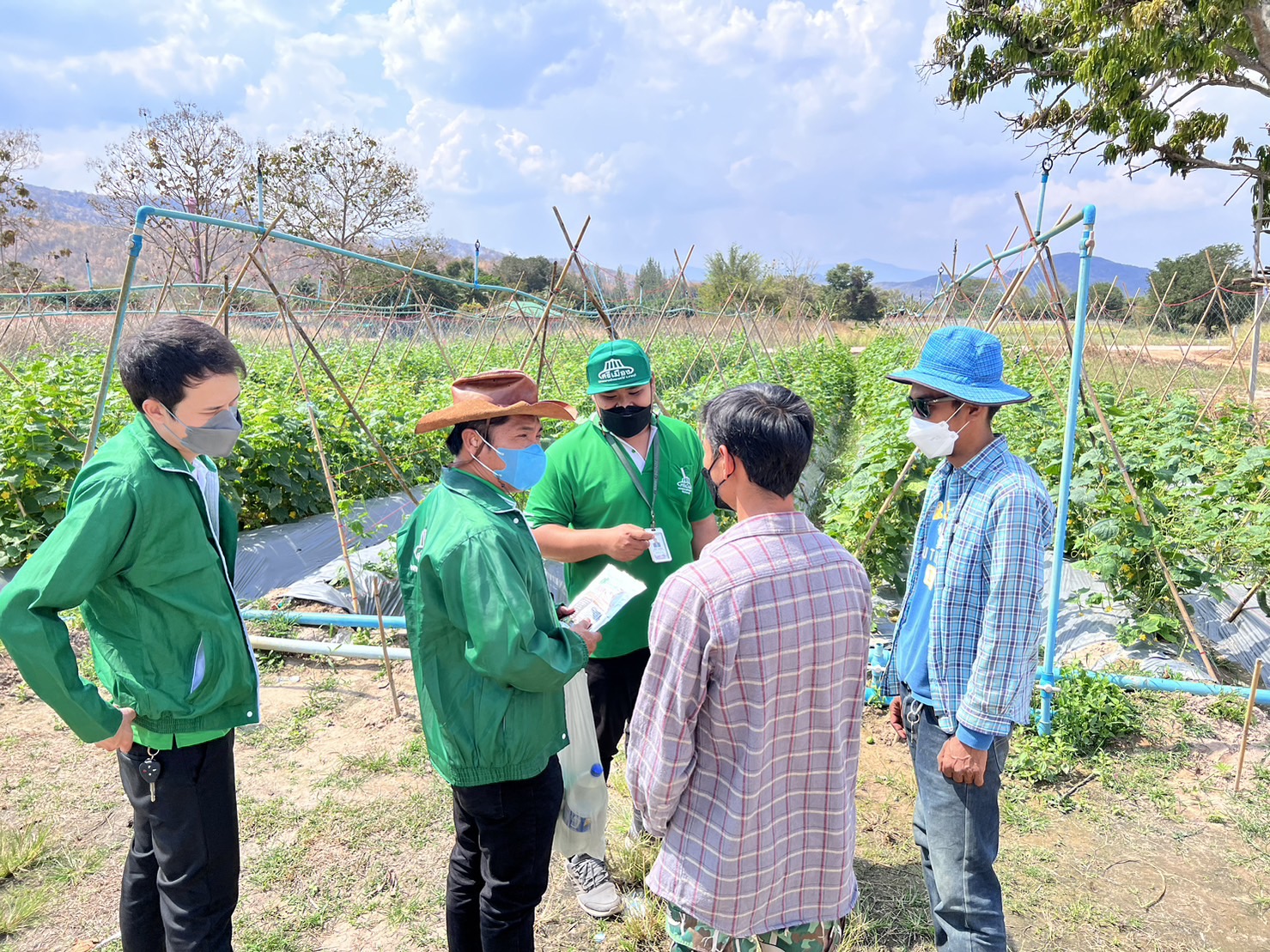 ทีมงานฝ่ายพัฒนาการผลิตลงพื้นที่ร่วมกับเจ้าหน้าที่ ศวพ.ราชบุรี ส่งเสริมและสนับสนุนการตรวจรับรองการผลิตพืช GAP ของเกษตรกรในกลุ่มเครือข่ายตลาดศรีเมือง