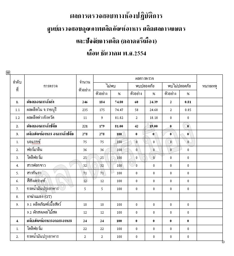 ผลการตรวจสอบทางห้องปฏิบัติการ เดือน ธันวาคม พ.ศ.2554    30 ม.ค. 2555