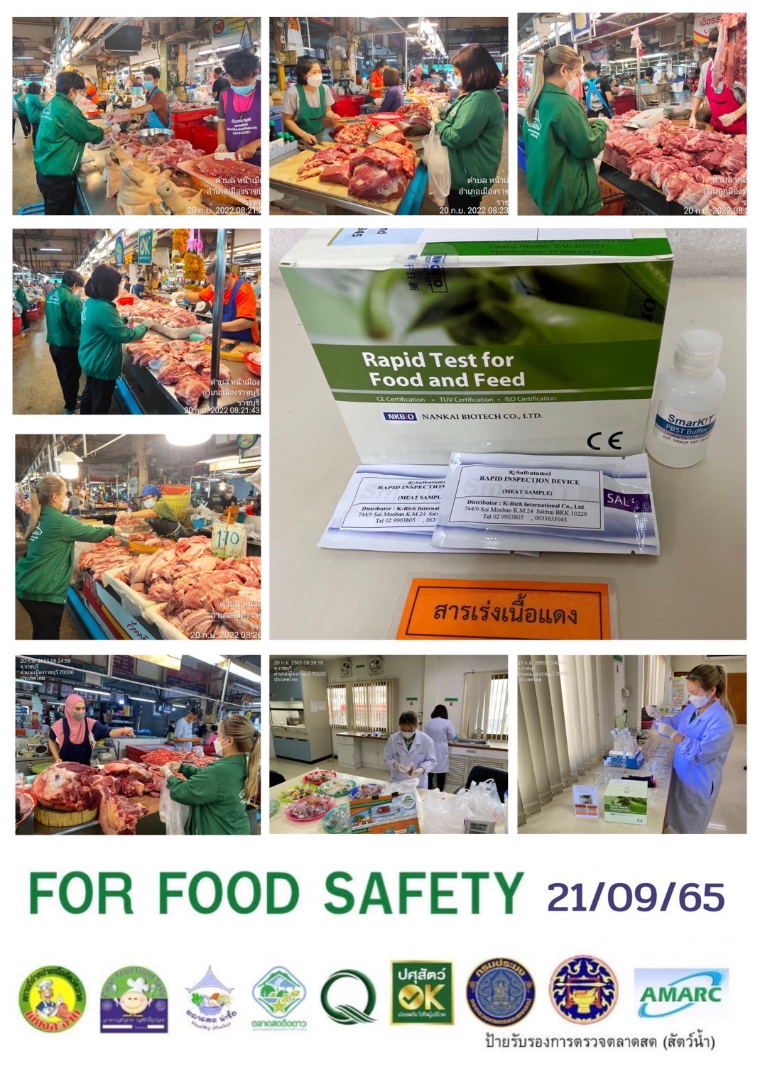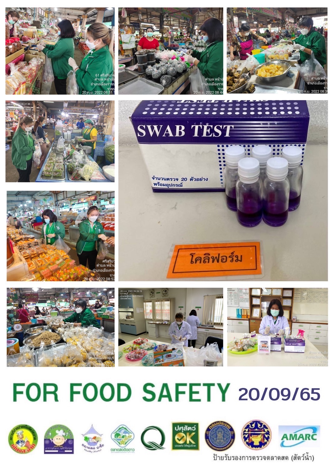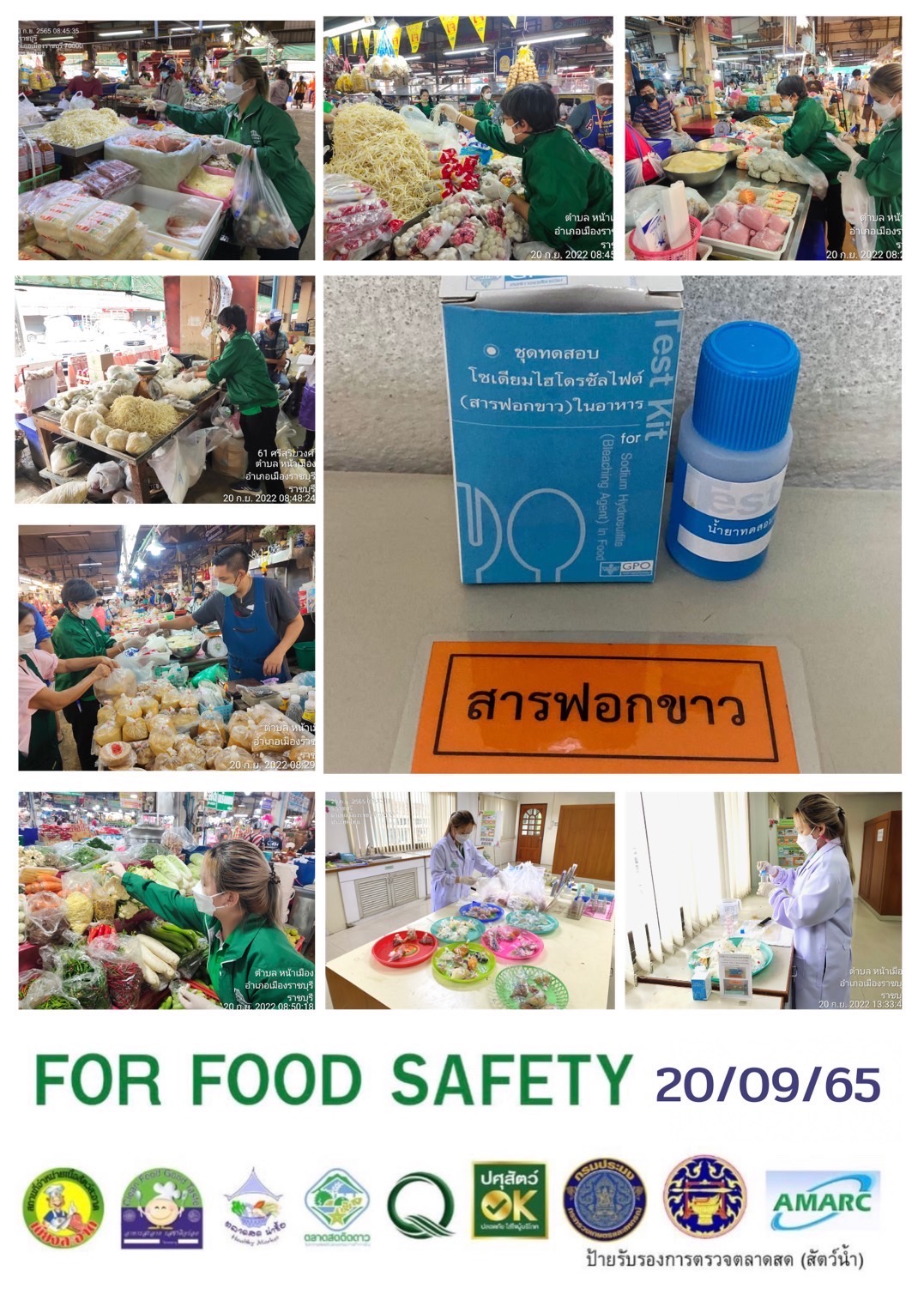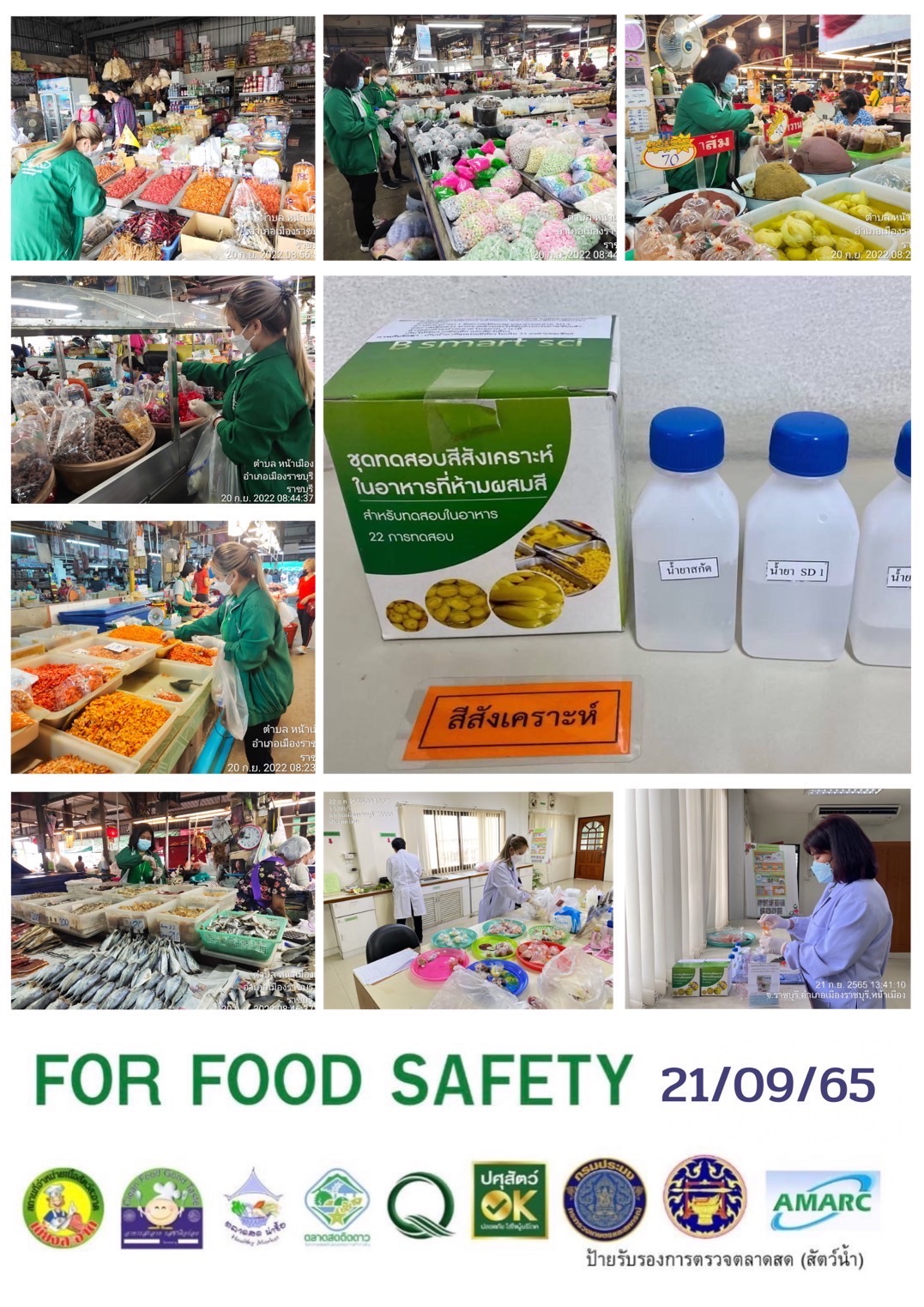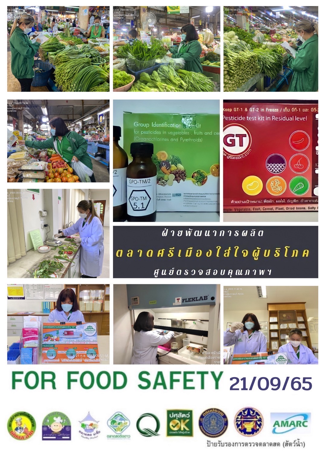 สรุปผลการตรวจสอบสารพิษตกค้างในผลผลิตการเกษตรและผลิตภัณฑ์อาหาร (ตลาดศรีเมือง) ประจำเดือน กันยายน 2565 - GT จำนวน 1,079 ตัวอย่าง ไม่พบ 1,056 ตัวอย่าง พบในระดับปลอดภัย 23 ตัวอย่าง - GPO จำนวน 90 ตัวอย่าง ไม่พบ 90 ตัวอย่าง - บอแรกซ์ 50 ตัวอย่าง ไม่พบ 50 ตัวอย่าง - ฟอร์มาลีน 40 ตัวอย่าง ไม่พบ 40 ตัวอย่าง - สารเร่งเนื้อแดง 21 ตัวอย่าง ไม่พบ 21 ตัวอย่าง - สารฟอกขาว 47 ตัวอย่าง ไม่พบ 47 ตัวอย่าง - สารกันรา 75 ตัวอย่าง ไม่พบ 75 ตัวอย่าง - สีสังเคราะห์ 32 ตัวอย่าง ไม่ 32 ตัวอย่าง - โพลาร์ในน้ำมันทอดซ้ำ 6 ตัวอย่าง ไม่พบ 6 ตัวอย่าง - สารกันบูด 20 ตัวอย่าง ไม่พบ 20 ตัวอย่าง - สารไนไตรท์ 10 ตัวอย่าง ไม่พบ 10 ตัวอย่าง - เชื้อโคลิฟอร์ม 185 ตัวอย่าง ไม่พบ 185 ตัวอย่าง