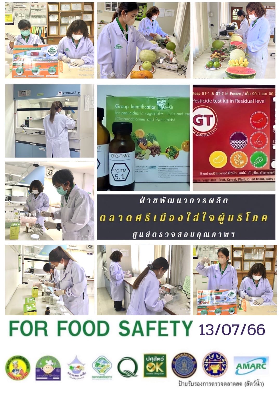 สรุปผลการตรวจสอบสารพิษตกค้างในผลผลิตการเกษตร​และผลิตภัณฑ์​อาหาร (ตลาดศรีเมือง)​ ประจำเดือน กรกฎาคม 2566 - GT จำนวน 1291 ตัวอย่าง ไม่พบ​ 1234 ตัวอย่าง พบในระดับปลอดภัย​ 57 ตัวอย่าง - GPO จำนวน 124 ตัวอย่าง ไม่พบ 124 ตัวอย่าง - บอแรกซ์​ 57 ตัวอย่าง ไม่พบ 57 ตัวอย่าง - ฟอร์มาลีน 42 ตัวอย่าง ไม่พบ 42 ตัวอย่าง - สารเร่งเนื้อแดง 17 ตัวอย่าง ไม่พบ 17 ตัวอย่าง - สารฟอกขาว 50 ตัวอย่าง ไม่พบ 50 ตัวอย่าง - สารกันรา 69 ตัวอย่าง ไม่พบ 69 ตัวอย่าง - สีสังเคราะห์​ 40 ตัวอย่าง ไม่ 40 ตัวอย่าง - โพลาร์ในน้ำมันทอดซ้ำ 8 ตัวอย่าง ไม่พบ 8 ตัวอย่าง - สารกันบูด 21 ตัวอย่าง ไม่พบ 21 ตัวอย่าง - สารไนไตรท์ 16 ตัวอย่าง ไม่พบ 16 ตัวอย่าง - เชื้อโคลิฟอร์ม 389 ตัวอย่าง ไม่พบ 389 ตัวอย่าง