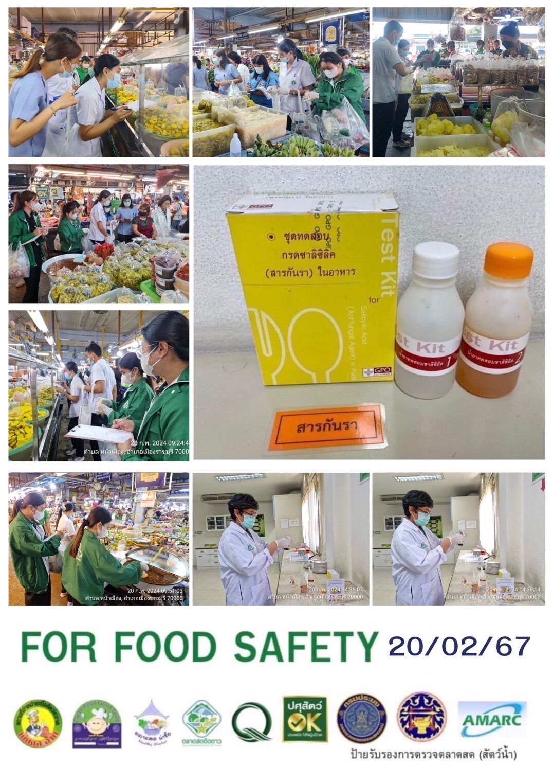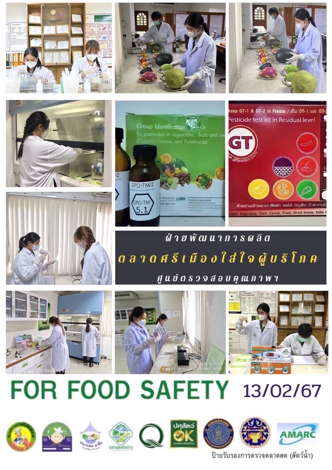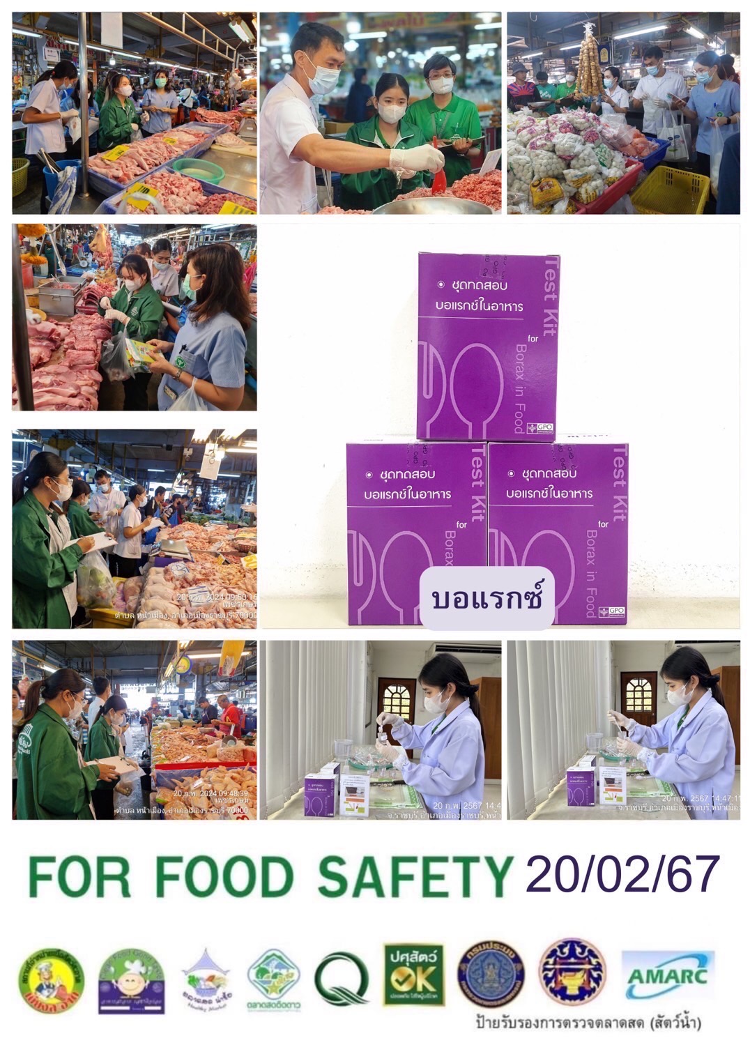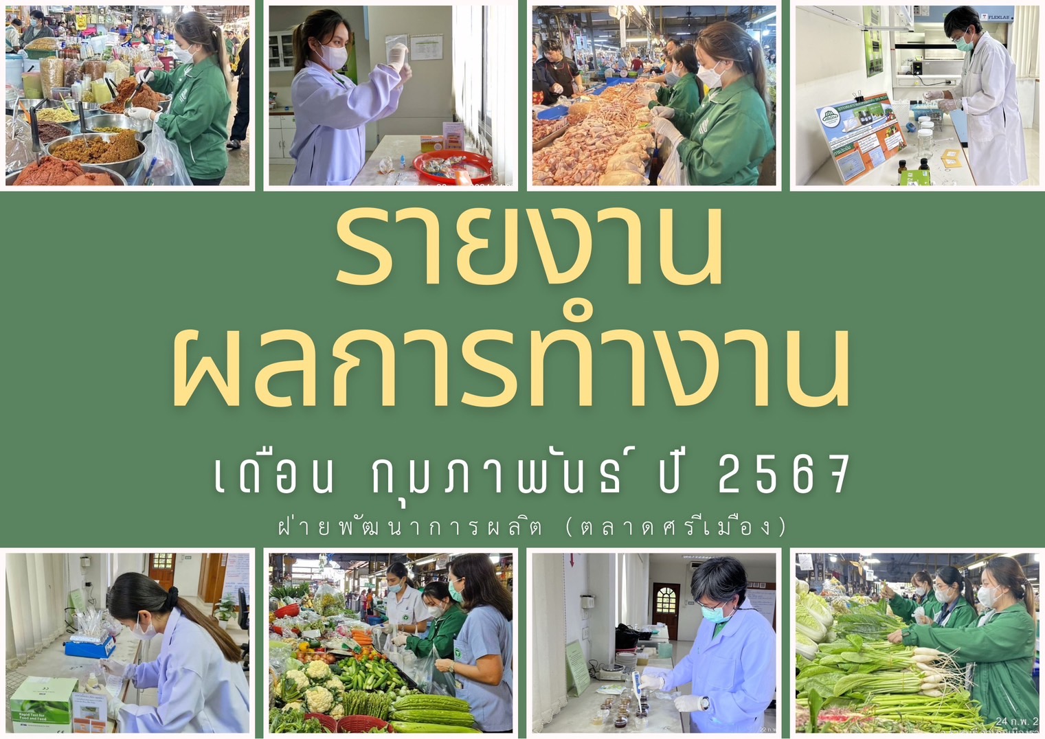 สรุปผลการตรวจสอบสารพิษตกค้างในผลผลิตการเกษตร​และผลิตภัณฑ์​อาหาร (ตลาดศรีเมือง)​ ประจำเดือน กุมภาพันธ์ 2567 - GT จำนวน 1,016 ตัวอย่าง ไม่พบ​ 1,004 ตัวอย่าง พบในระดับปลอดภัย​ 11 ตัวอย่าง พบในระดับไม่ปลอดภัย 1 ตัวอย่าง - GPO จำนวน 153 ตัวอย่าง ไม่พบ 0 ตัวอย่าง - บอแรกซ์​ 41 ตัวอย่าง ไม่พบ 41 ตัวอย่าง - ฟอร์มาลีน 41 ตัวอย่าง ไม่พบ 41 ตัวอย่าง - สารเร่งเนื้อแดง 17 ตัวอย่าง ไม่พบ 17 ตัวอย่าง - สารฟอกขาว 50 ตัวอย่าง ไม่พบ 50 ตัวอย่าง - สารกันรา 47 ตัวอย่าง ไม่พบ 47 ตัวอย่าง - สีสังเคราะห์​ 37 ตัวอย่าง ไม่พบ 37 ตัวอย่าง - โพลาร์ในน้ำมันทอดซ้ำ 7ตัวอย่าง ไม่พบ 7 ตัวอย่าง - สารกันบูด 21 ตัวอย่าง ไม่พบ 21 ตัวอย่าง - สารไนไตรท์ 18 ตัวอย่าง ไม่พบ 18 ตัวอย่าง - เชื้อโคลิฟอร์ม 266 ตัวอย่าง ไม่พบ 266 ตัวอย่าง -โซเดียม 13 ตัวอย่าง ไม่พบ 13 ตัวอย่าง