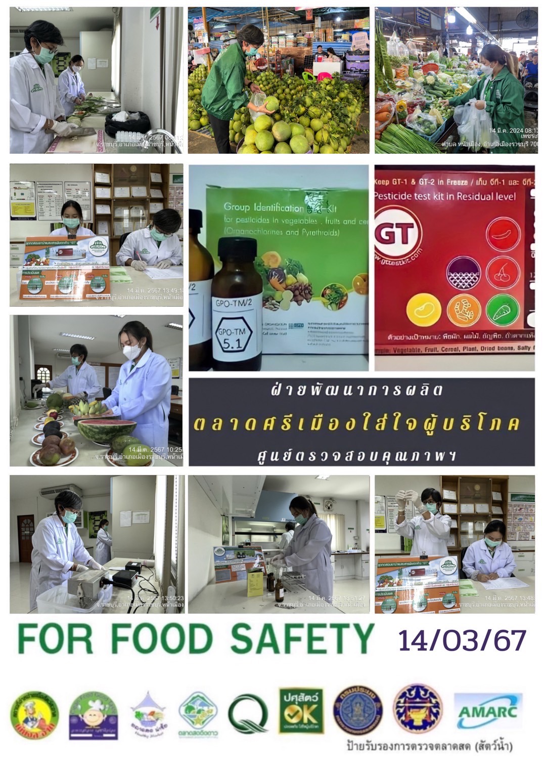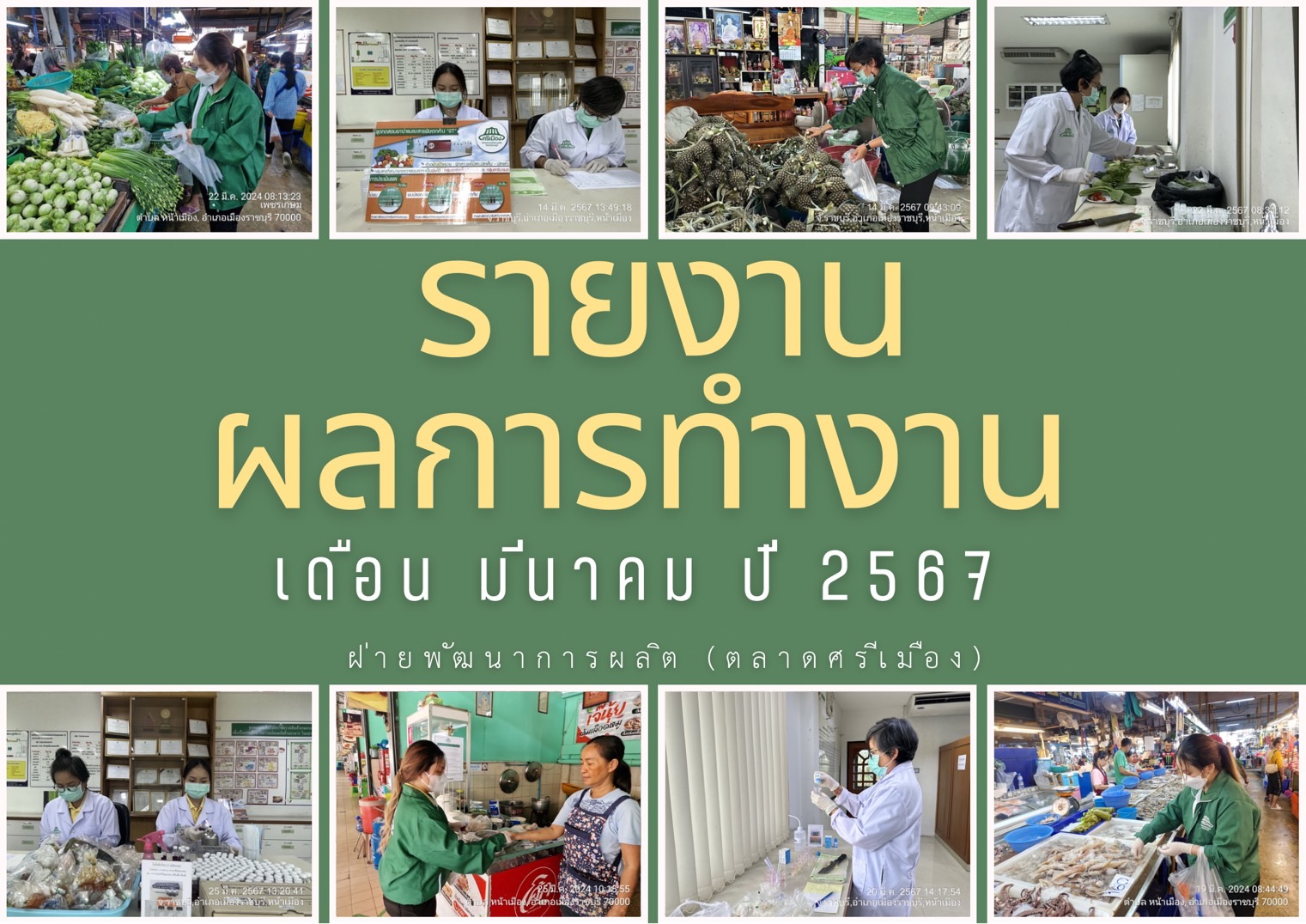 สรุปผลการตรวจสอบสารพิษตกค้างในผลผลิตการเกษตร​และผลิตภัณฑ์​อาหาร (ตลาดศรีเมือง)​ ประจำเดือน มีนาคม 2567 - GT จำนวน 881 ตัวอย่าง ไม่พบ​ 870 ตัวอย่าง พบในระดับปลอดภัย​ 11 ตัวอย่าง พบในระดับไม่ปลอดภัย 0 ตัวอย่าง - GPO จำนวน 83 ตัวอย่าง ไม่พบ 83 ตัวอย่าง พบไม่ปลอดภัย 0 ตัวอย่าง - บอแรกซ์​ 46 ตัวอย่าง ไม่พบ 46 ตัวอย่าง - ฟอร์มาลีน 42 ตัวอย่าง ไม่พบ 26 ตัวอย่าง พบสารฟอร์มาลีน 16 ตัวอย่าง - สารเร่งเนื้อแดง 17 ตัวอย่าง ไม่พบ 17 ตัวอย่าง - สารฟอกขาว 44 ตัวอย่าง ไม่พบ 44 ตัวอย่าง - สารกันรา 61 ตัวอย่าง ไม่พบ 61 ตัวอย่าง - สีสังเคราะห์​ 36 ตัวอย่าง ไม่พบ 36 ตัวอย่าง - สารโพลาร์ในน้ำมันทอดซ้ำ 11 ตัวอย่าง ไม่พบ 11 ตัวอย่าง - สารกันบูด 24 ตัวอย่าง ไม่พบ 24 ตัวอย่าง - สารไนไตรท์ 19 ตัวอย่าง ไม่พบ 19 ตัวอย่าง - โคลิฟอร์ม 289 ตัวอย่าง ไม่พบ 289 ตัวอย่าง -โซเดียม 27 ตัวอย่าง ไม่พบ 27 ตัวอย่าง