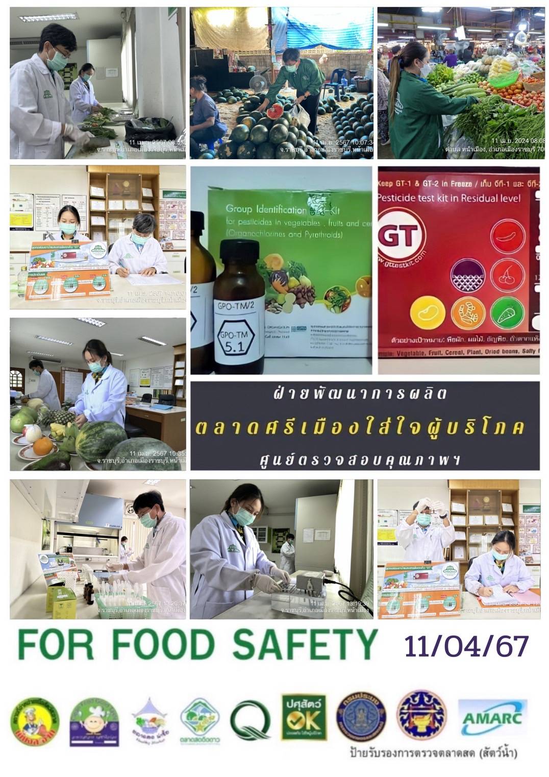 สรุปผลการตรวจสอบสารพิษตกค้างในผลผลิตการเกษตร​และผลิตภัณฑ์​อาหาร (ตลาดศรีเมือง)​ ประจำเดือน เมษายน 2567 - GT จำนวน 741 ตัวอย่าง ไม่พบ​ 731 ตัวอย่าง พบในระดับปลอดภัย​ 10 ตัวอย่าง พบในระดับไม่ปลอดภัย 0 ตัวอย่าง - GPO จำนวน 84 ตัวอย่าง ไม่พบ 84 ตัวอย่าง พบไม่ปลอดภัย 0 ตัวอย่าง - บอแรกซ์​ 48 ตัวอย่าง ไม่พบ 48 ตัวอย่าง - ฟอร์มาลีน 42 ตัวอย่าง ไม่พบ 35 ตัวอย่าง พบสารฟอร์มาลีน 7 ตัวอย่าง - สารเร่งเนื้อแดง 18 ตัวอย่าง ไม่พบ 18 ตัวอย่าง - สารฟอกขาว 49 ตัวอย่าง ไม่พบ 49 ตัวอย่าง - สารกันรา 80 ตัวอย่าง ไม่พบ 80 ตัวอย่าง - สีสังเคราะห์​ 37 ตัวอย่าง ไม่พบ 37 ตัวอย่าง - สารโพลาร์ในน้ำมันทอดซ้ำ 8 ตัวอย่าง ไม่พบ 8 ตัวอย่าง - สารกันบูด 20 ตัวอย่าง ไม่พบ 20 ตัวอย่าง - สารไนไตรท์ 17 ตัวอย่าง ไม่พบ 17 ตัวอย่าง - โคลิฟอร์ม 175 ตัวอย่าง ไม่พบ 175 ตัวอย่าง -โซเดียม 23 ตัวอย่าง ไม่พบ 23 ตัวอย่าง