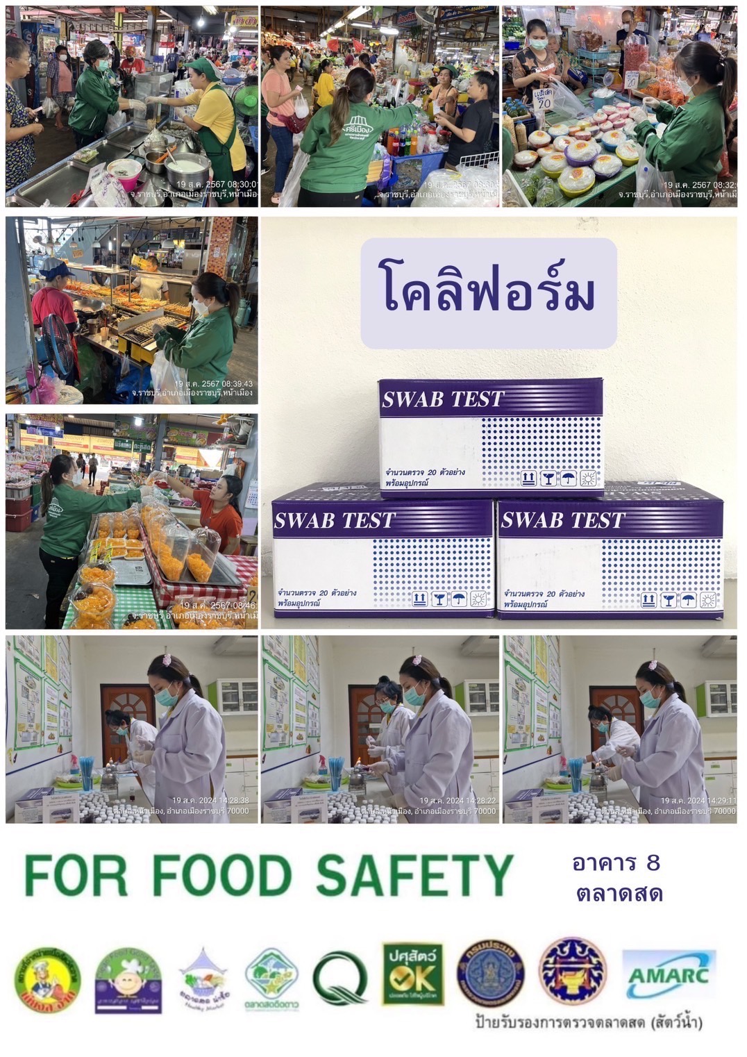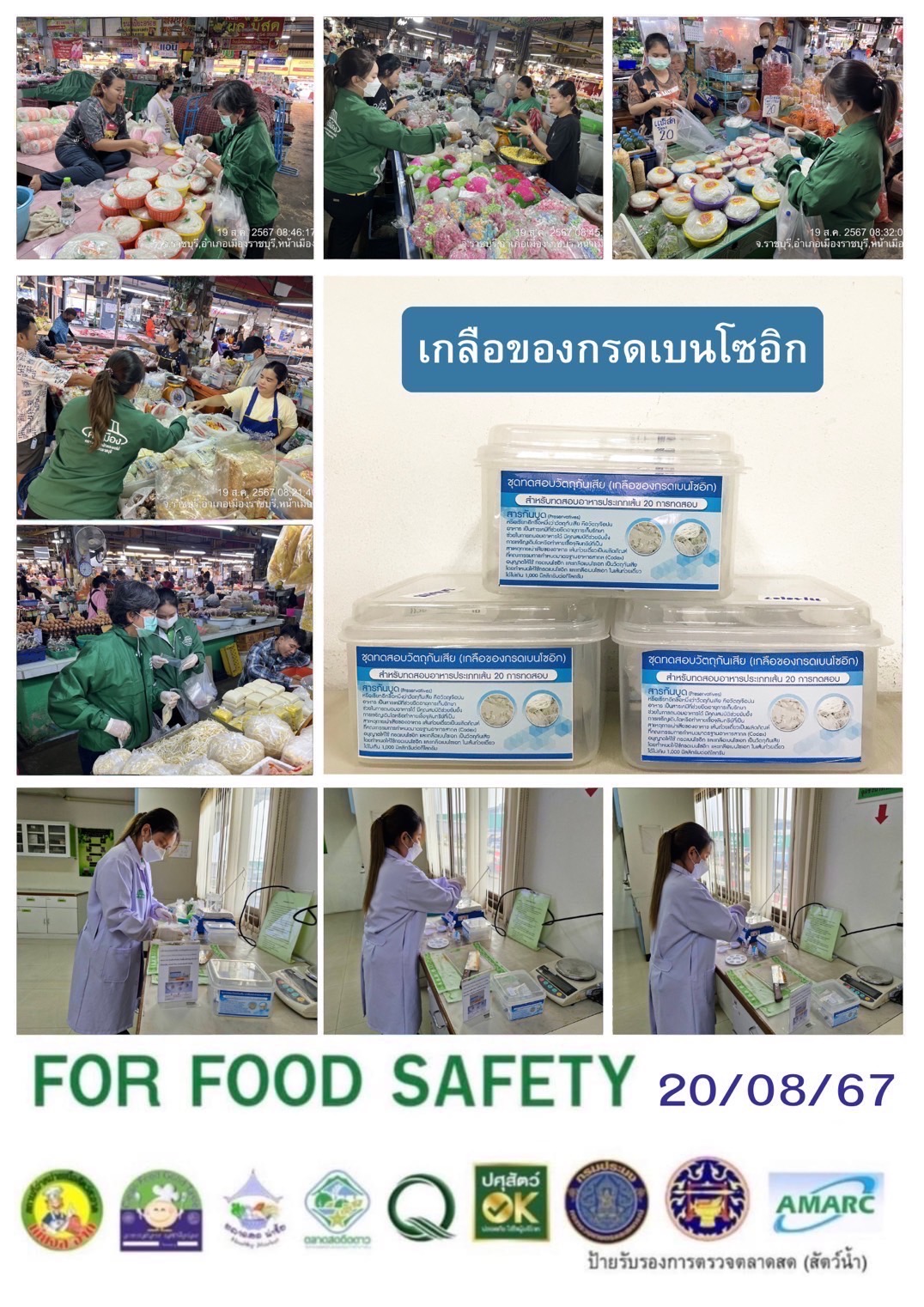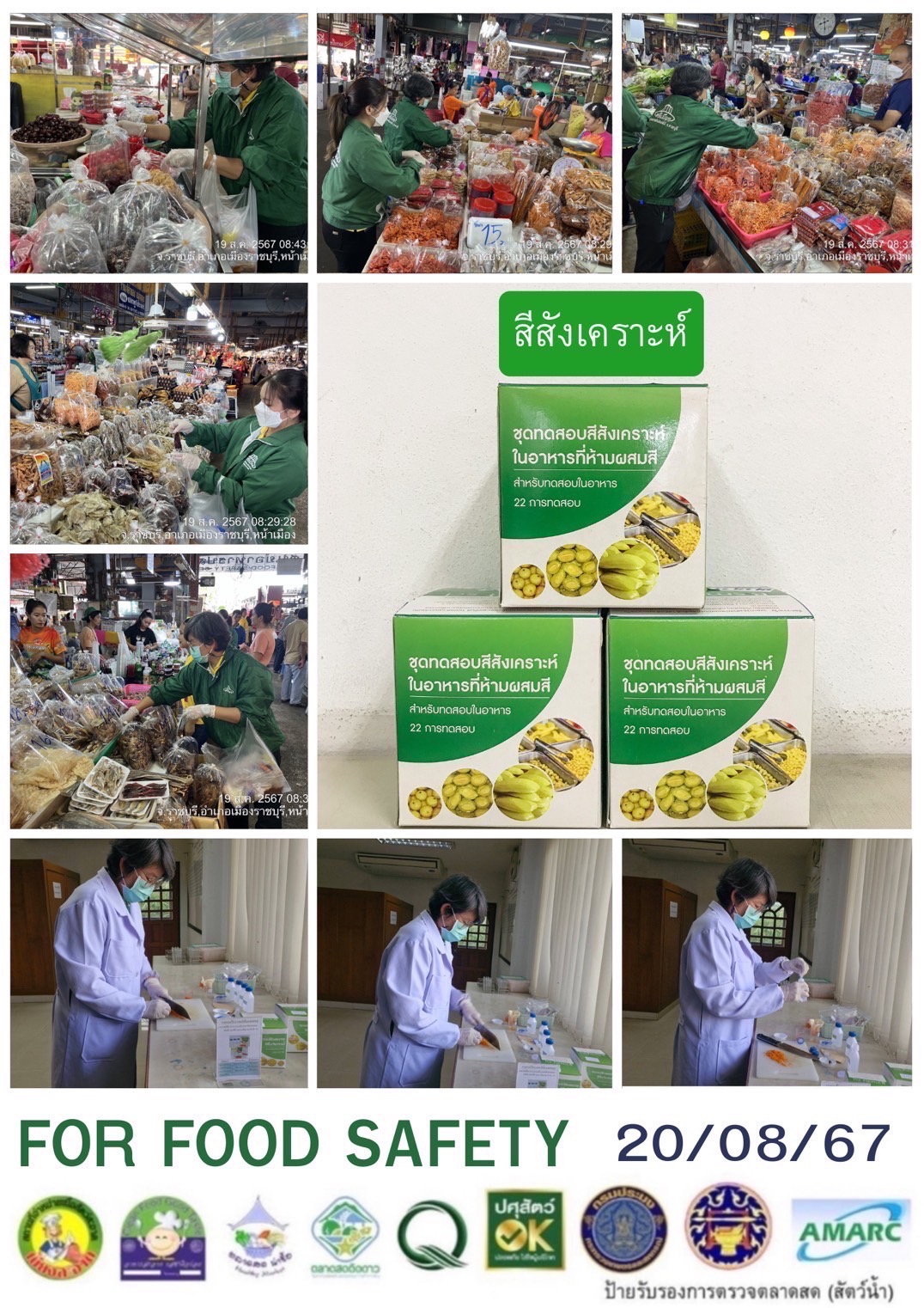 สรุปผลการตรวจสอบสารพิษตกค้างในผลผลิตการเกษตร​และผลิตภัณฑ์​อาหาร (ตลาดศรีเมือง)​ ประจำเดือน สิงหาคม 2567 - GT จำนวน 1611 ตัวอย่าง ไม่พบ​ 1533 ตัวอย่าง พบในระดับปลอดภัย​ 73 ตัวอย่าง พบในระดับไม่ปลอดภัย 5 ตัวอย่าง - GPO จำนวน 114 ตัวอย่าง ไม่พบ 114 ตัวอย่าง พบไม่ปลอดภัย 0 ตัวอย่าง - บอแรกซ์​ 46 ตัวอย่าง ไม่พบ 46 ตัวอย่าง - ฟอร์มาลีน 44 ตัวอย่าง ไม่พบ 44 ตัวอย่าง - สารเร่งเนื้อแดง 18 ตัวอย่าง ไม่พบ 18 ตัวอย่าง - สารฟอกขาว 45 ตัวอย่าง ไม่พบ 45 ตัวอย่าง - สารกันรา 71 ตัวอย่าง ไม่พบ 71 ตัวอย่าง - สีสังเคราะห์​ 35 ตัวอย่าง ไม่พบ 35 ตัวอย่าง - สารโพลาร์ในน้ำมันทอดซ้ำ 5 ตัวอย่าง ไม่พบ 5 ตัวอย่าง - สารกันบูด 23 ตัวอย่าง ไม่พบ 23 ตัวอย่าง - สารไนไตรท์ 20 ตัวอย่าง ไม่พบ 20 ตัวอย่าง - โคลิฟอร์ม 205 ตัวอย่าง ไม่พบ 205 ตัวอย่าง -โซเดียม 28 ตัวอย่าง ไม่พบ 28 ตัวอย่าง