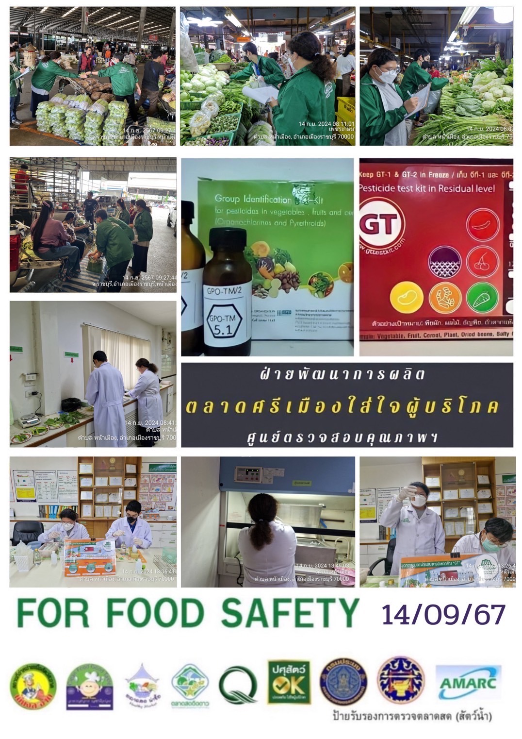 สรุปผลการตรวจสอบสารพิษตกค้างในผลผลิตการเกษตร​และผลิตภัณฑ์​อาหาร (ตลาดศรีเมือง)​ ประจำเดือน กันยายน 2567 - GT จำนวน 1,190 ตัวอย่าง ไม่พบ​ 1,140 ตัวอย่าง พบในระดับปลอดภัย​ 44 ตัวอย่าง พบในระดับไม่ปลอดภัย 6 ตัวอย่าง - GPO จำนวน 89 ตัวอย่าง ไม่พบ 89 ตัวอย่าง พบไม่ปลอดภัย 0 ตัวอย่าง - บอแรกซ์​ 48 ตัวอย่าง ไม่พบ 48 ตัวอย่าง - ฟอร์มาลีน 42 ตัวอย่าง ไม่พบ 42 ตัวอย่าง - สารเร่งเนื้อแดง 17 ตัวอย่าง ไม่พบ 17 ตัวอย่าง - สารฟอกขาว 48 ตัวอย่าง ไม่พบ 48 ตัวอย่าง - สารกันรา 80 ตัวอย่าง ไม่พบ 80 ตัวอย่าง - สีสังเคราะห์​ 30 ตัวอย่าง ไม่พบ 30 ตัวอย่าง - สารโพลาร์ในน้ำมันทอดซ้ำ 12 ตัวอย่าง ไม่พบ 12 ตัวอย่าง - สารกันบูด 20 ตัวอย่าง ไม่พบ 20 ตัวอย่าง - สารไนไตรท์ 17 ตัวอย่าง ไม่พบ 17 ตัวอย่าง - โคลิฟอร์ม 284 ตัวอย่าง ไม่พบ 284 ตัวอย่าง -โซเดียม 32 ตัวอย่าง ไม่พบ 32 ตัวอย่าง