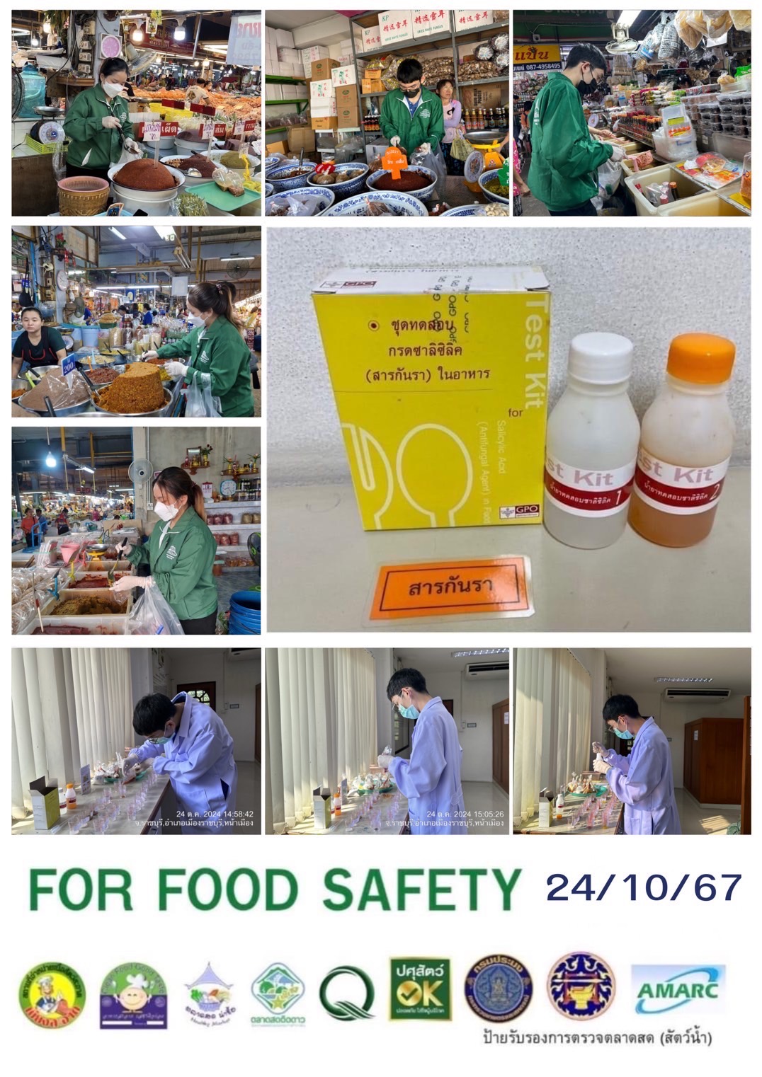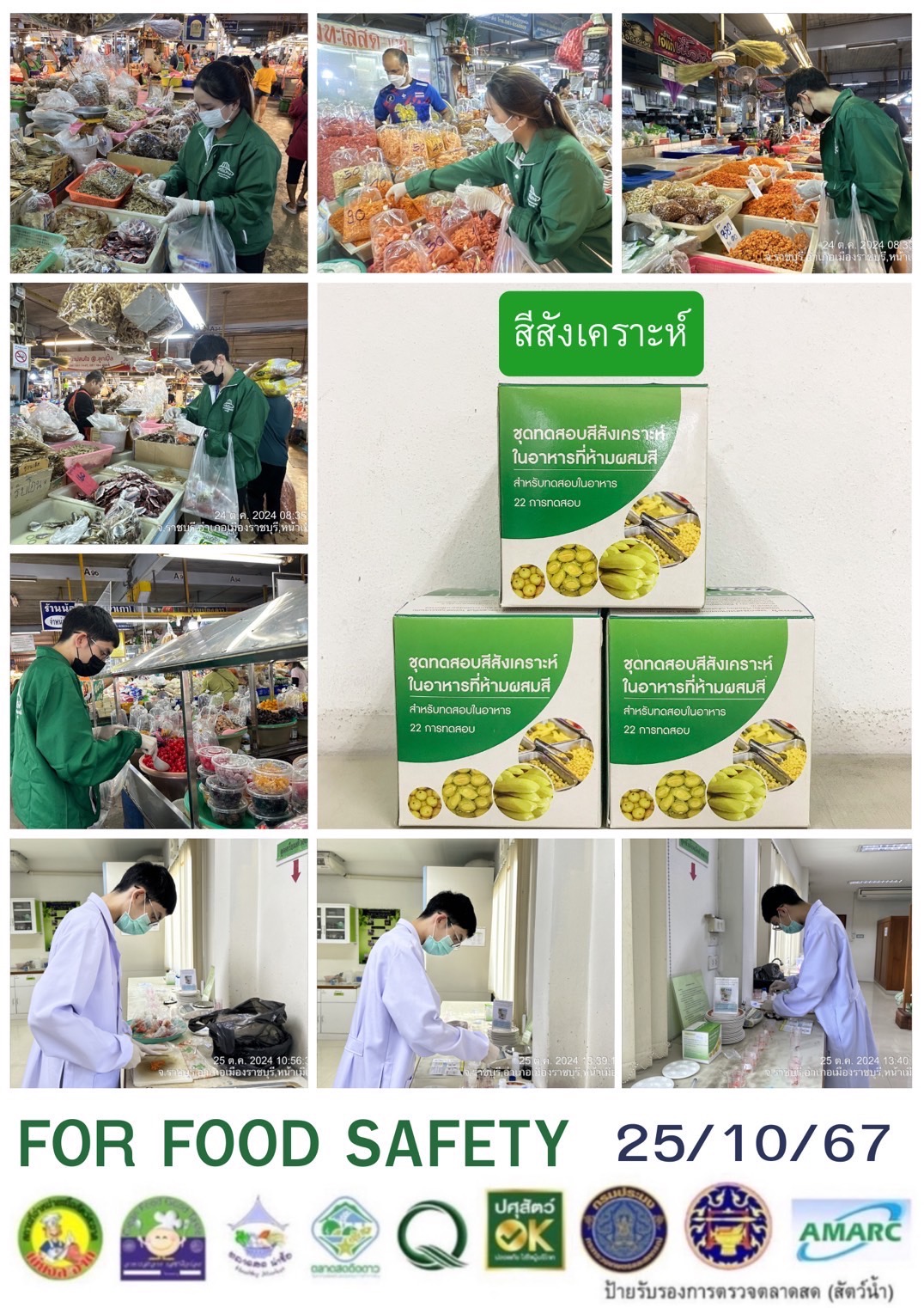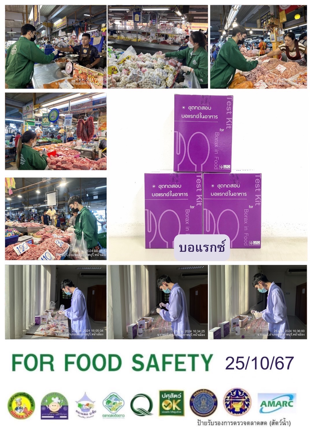 สรุปผลการตรวจสอบสารพิษตกค้างในผลผลิตการเกษตร​และผลิตภัณฑ์​อาหาร (ตลาดศรีเมือง)​ ประจำเดือน ตุลาคม 2567 - GT จำนวน 882 ตัวอย่าง ไม่พบ​ 851 ตัวอย่าง พบในระดับปลอดภัย​ 26 ตัวอย่าง พบในระดับไม่ปลอดภัย 5 ตัวอย่าง - GPO จำนวน 80 ตัวอย่าง ไม่พบ 80 ตัวอย่าง พบไม่ปลอดภัย 0 ตัวอย่าง - บอแรกซ์​ 45 ตัวอย่าง ไม่พบ 45 ตัวอย่าง - ฟอร์มาลีน 41 ตัวอย่าง ไม่พบ 41 ตัวอย่าง - สารเร่งเนื้อแดง 17 ตัวอย่าง ไม่พบ 17 ตัวอย่าง - สารฟอกขาว 48 ตัวอย่าง ไม่พบ 48 ตัวอย่าง - สารกันรา 59 ตัวอย่าง ไม่พบ 59 ตัวอย่าง - สีสังเคราะห์​ 30 ตัวอย่าง ไม่พบ 30 ตัวอย่าง - สารโพลาร์ในน้ำมันทอดซ้ำ 7 ตัวอย่าง ไม่พบ 7 ตัวอย่าง - สารกันบูด 20 ตัวอย่าง ไม่พบ 20 ตัวอย่าง - สารไนไตรท์ 19 ตัวอย่าง ไม่พบ 19 ตัวอย่าง - โคลิฟอร์ม 121 ตัวอย่าง ไม่พบ 121 ตัวอย่าง -โซเดียม 20 ตัวอย่าง ไม่พบ 20 ตัวอย่าง
