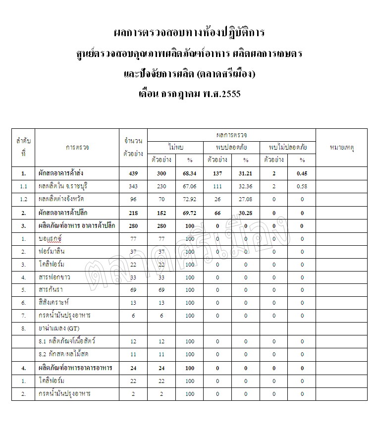 ผลการตรวจสอบทางห้องปฏิบัติการ เดือน กรกฏาคม พ.ศ 2555    4 ก.ย. 2555