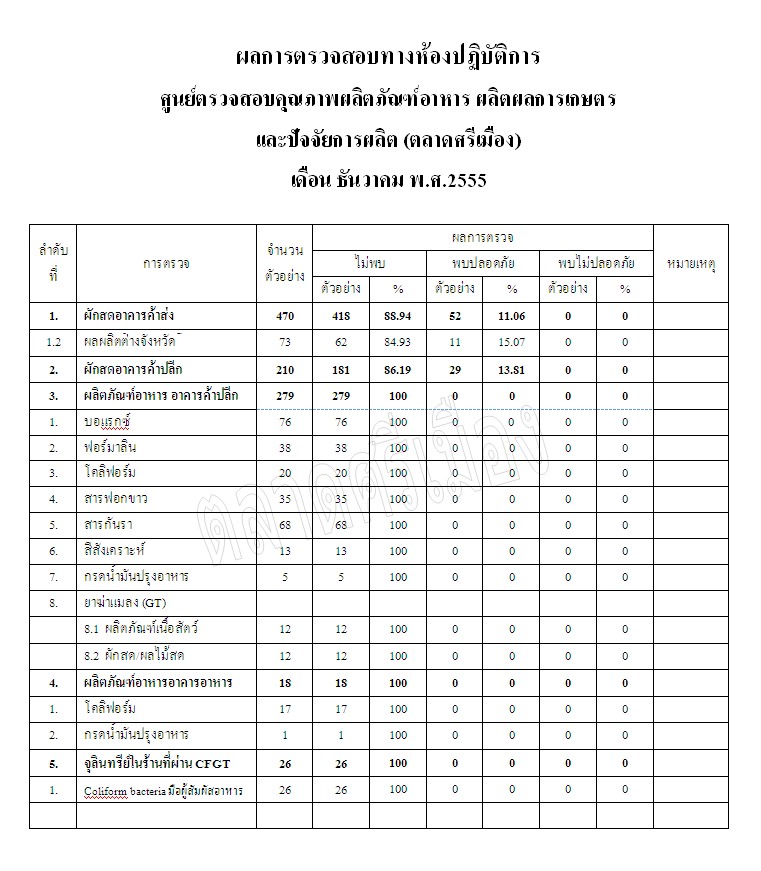 ผลการตรวจสอบทางห้องปฏิบัติการ เดือน ธันวาคม พ.ศ 2555    26 ก.พ. 2556