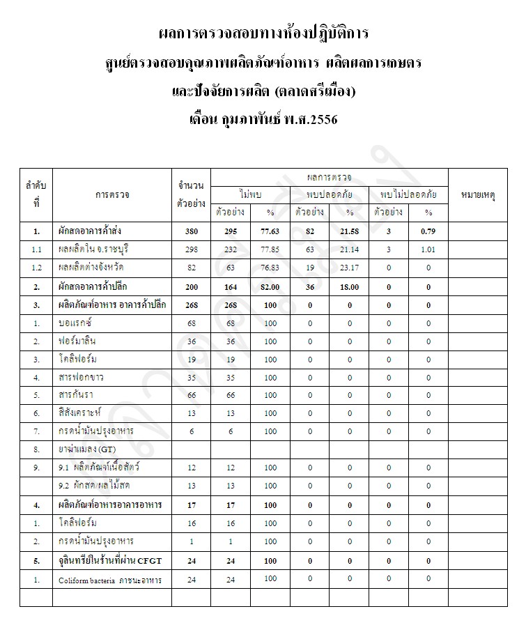 ผลการตรวจสอบทางห้องปฏิบัติการ เดือน กุมภาพันธ์ พ.ศ 2556    23 เม.ย. 2556