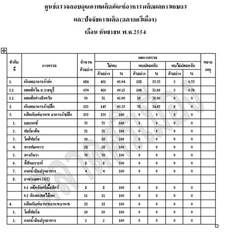 ผลการตรวจสอบทางห้องปฏิบัติการ เดือน กันยายน พ.ศ.2554    30 ม.ค. 2555