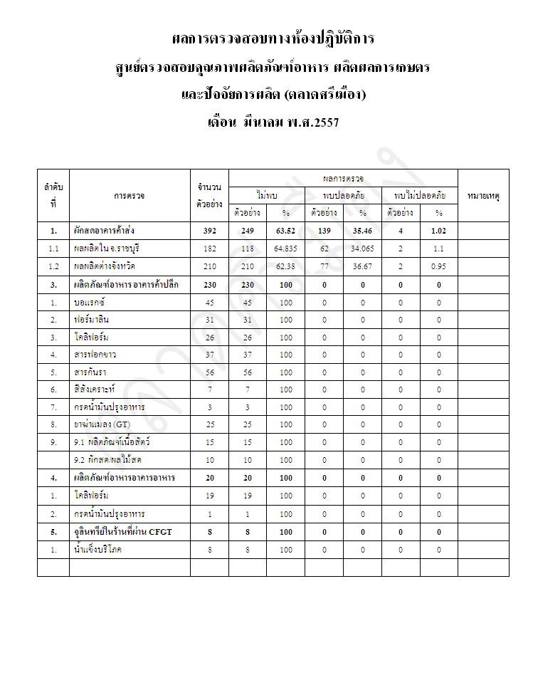 ผลการตรวจสอบทางห้องปฏิบัติการ เดือน มีนาคม พ.ศ 2557