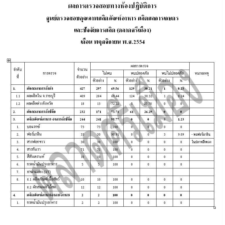 ผลการตรวจสอบทางห้องปฏิบัติการ เดือน พฤศจิกายน พ.ศ.2554    30 ม.ค. 2555