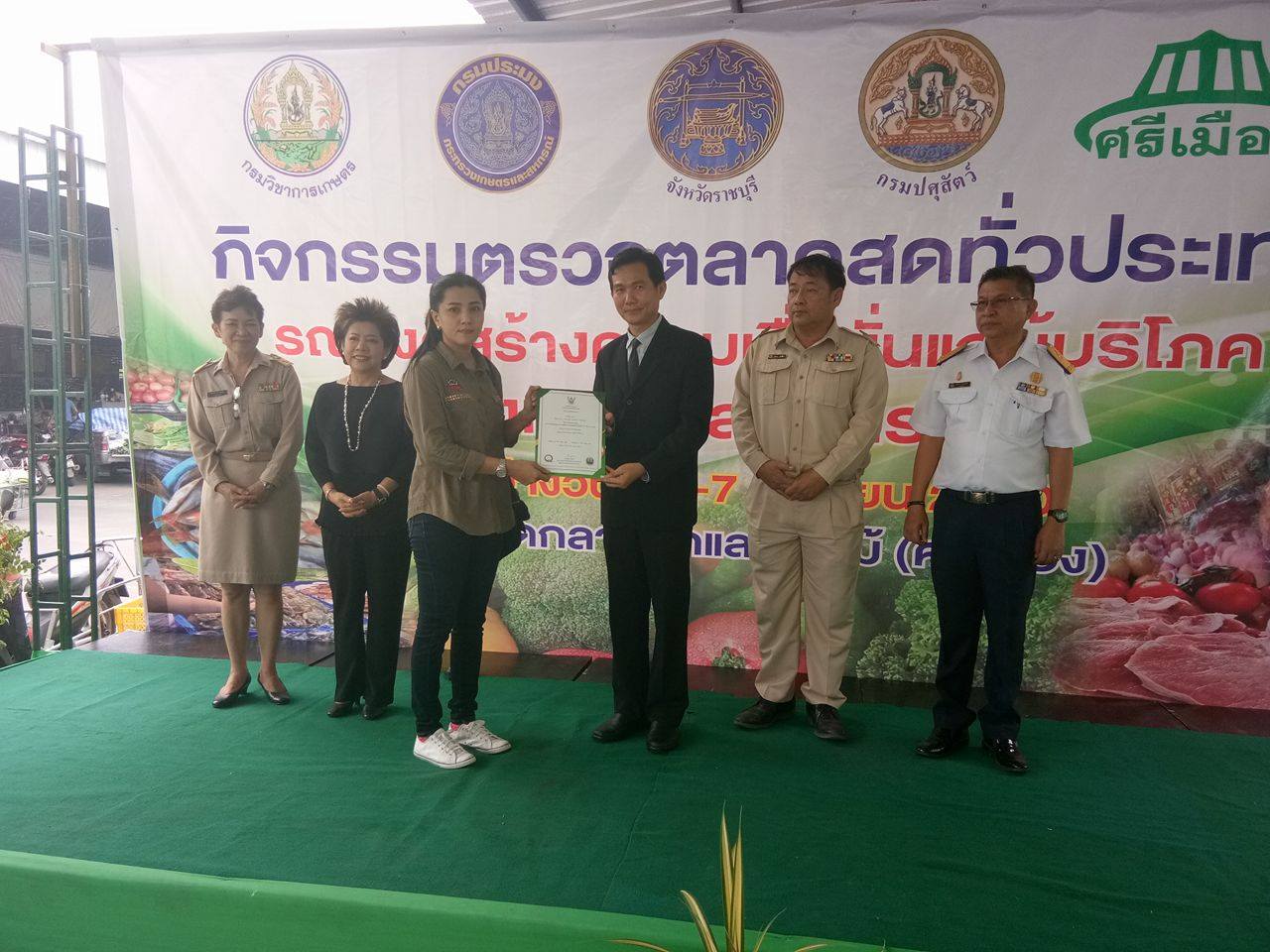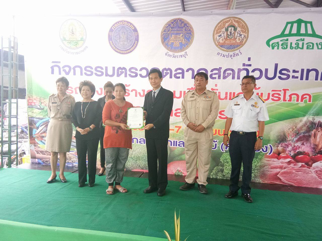 เมื่อวันที่6เม.ย เวลา 10.30 น. นายนิวัฒน์ รุ่งสาคร รองผู้ว่าราชการจังหวัดราชบุรี เป็นประธานพิธีเปิดและมอบป้ายรับรองแก่ผู้ประกอบการร้านจำหน่ายเนื้อสตว์ สัตว์น้ำ และพืชผัก ในกิจกรรมรณรงค์สร้างความเชื่อมั่นให้กับผู้บริโภคช่วงเทศกาลสงกรานต์ โดยมีสัตวแพทย์หญิงวรรณี สันตมนัส ปศุสัตว์จังหวัดราชบุรี กล่าวรายงานวัตถุประสงค์การจัดงาน คุณวีณา ศรีสรรพางค์ รองประธานกรรมการบริหารตลาดศรีเมือง กล่าวต้อนรับ พร้อมด้วยผู้แทนหน่วยงานภาครัฐและเอกชน ร่วมเป็นเกียรติในพิธีเปิด ณ บริเวณบู๊ธกิจกรรม 1 หลังจากนั้นได้มีการนั่งรถโมบายตรวจเยี่ยมผู้ประกอบการร้านจำหน่ายเนื้อสัตว์บริเวณอาคาร 15 ซอย 2 และอาคาร 8 ค้าปลีกด้วย. และในการนี้ ใด้มอบ หนังสือรับรองการQ:GAP. ให้แก่เกษตรกรในโครงการผักปลอดภัย จำนวน16ราย9กลุ่ม