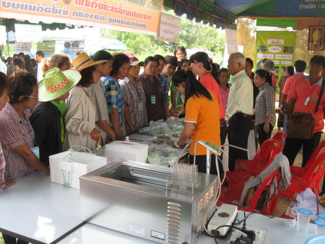อาจารย์ธนภณ พัฒนา ตัวแทนตลาดศรีเมือง นำเจ้าหน้าที่ศูนย์ตรวจสอบสารพิษตกค้างตลาดศรีเมือง สาธิตการตรวจสารพิษตกค้างในงาน Learning Day ในเดือนเมษายน 2557 จัดโดย สำนักงานเกษตรจังหวัดราชบุรี    19 ก.ค. 2557
